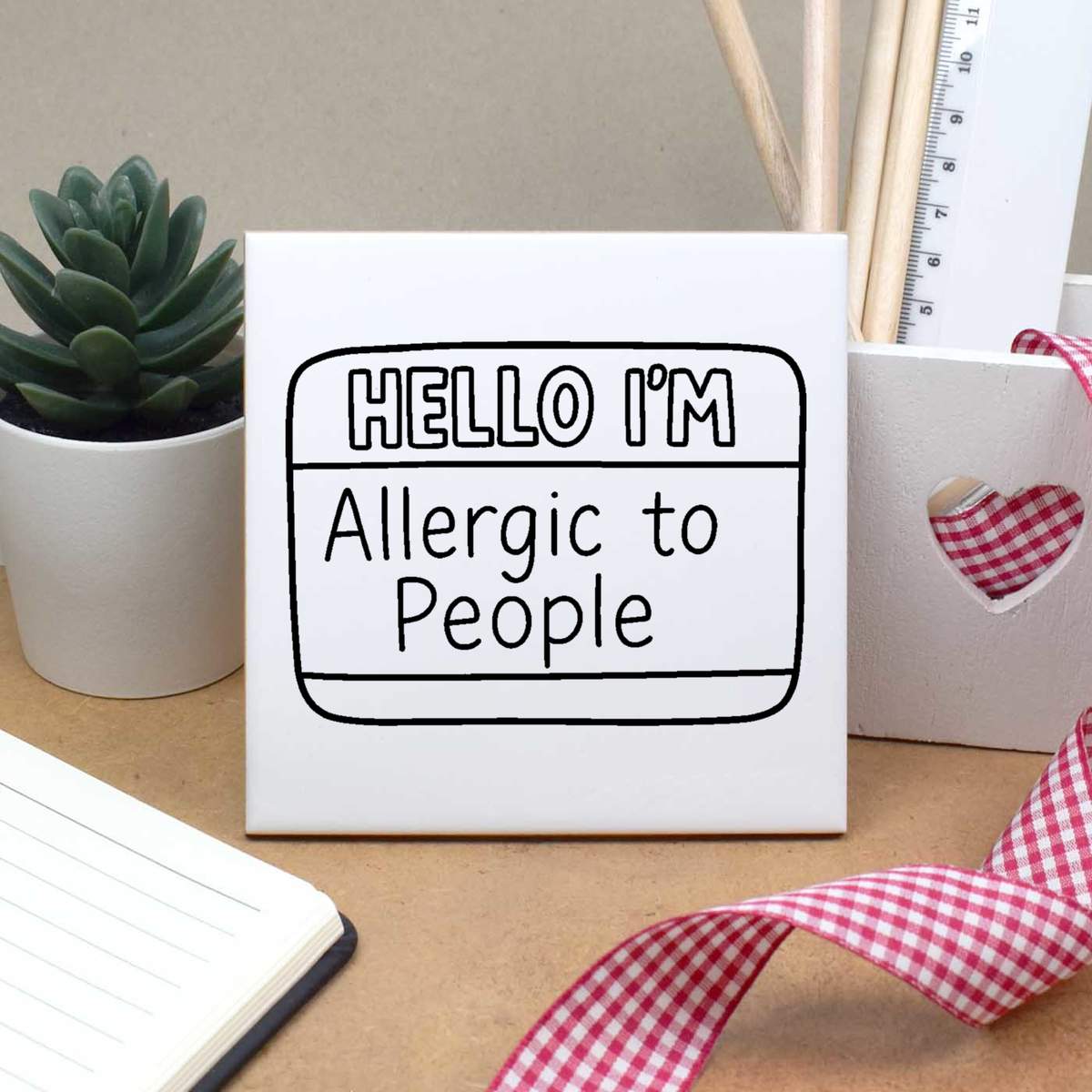 'Hello I'm Allergic To People' 108mm Square Ceramic Tile (TD00037306)