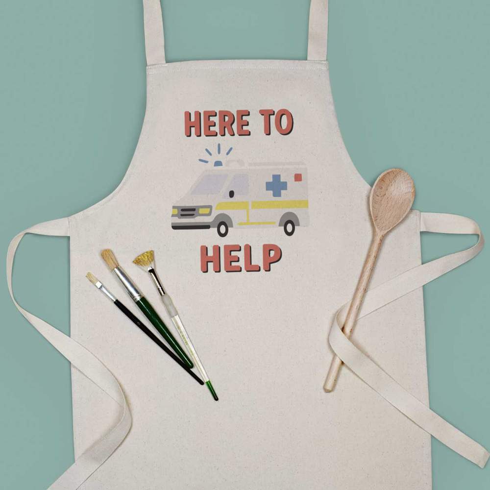 This apron can be used in the kitchen or for arts and crafts; perfect for little ones who love baking, painting or messy play. Our kid’s aprons are made from 100% cotton canvas and are printed on the front with a unique design. Each apron has a neck tie with hook and loop fastening and 60cm waist ties.