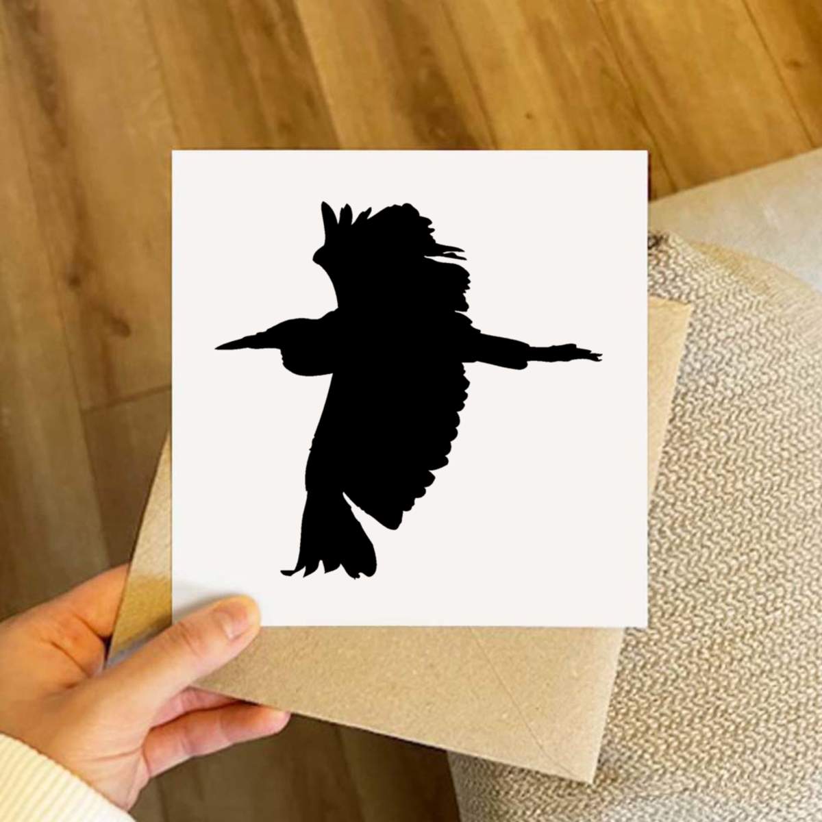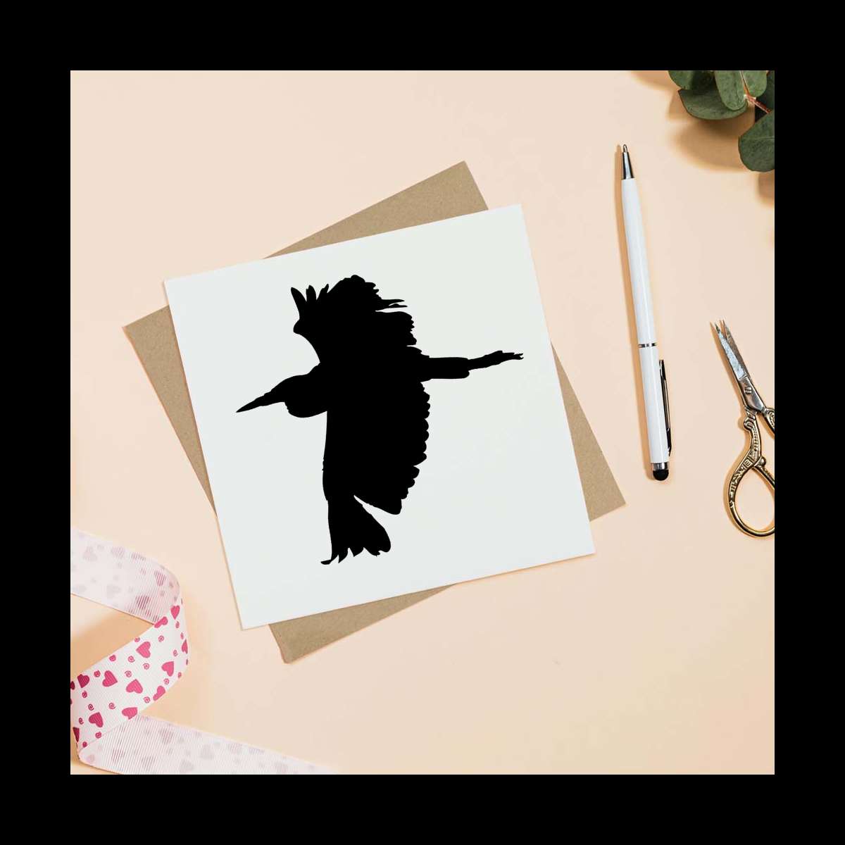 - Square greeting card supplied with a recycled brown envelope