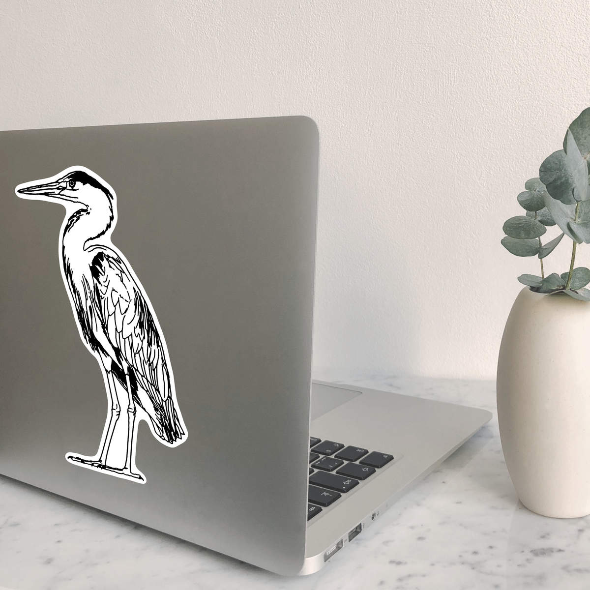 'Heron' White Premium Vinyl Decal Sticker – Waterproof, Durable & Easy to Apply - For Car Bumpers, Windows, Bins & More - Large (210mm) (DW00045067)