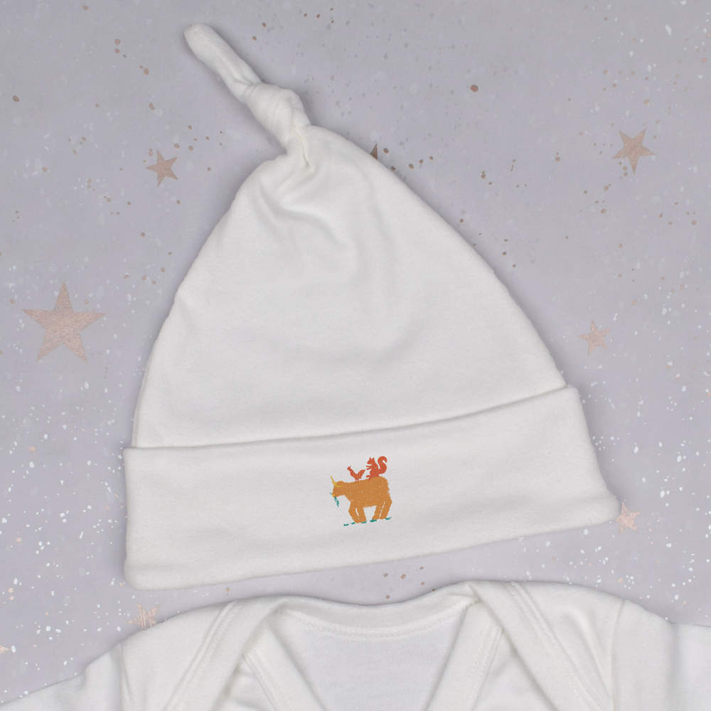 'Highland calf with squirrel and hen' Baby Beanie Hat (BH00022795)