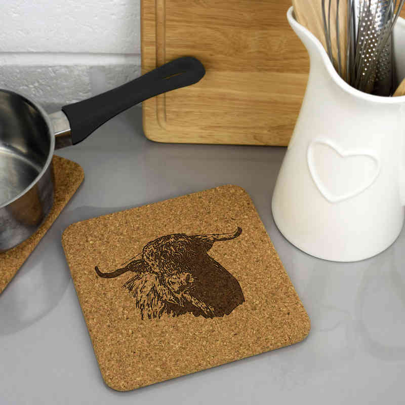 'Highland Cattle' Square Cork Trivet / Pot Stand (TR00007227)