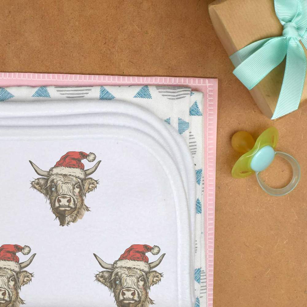 'Highland Cow Wearing Santa Hat' Baby Burp / Wash Cloth (BC00034016)