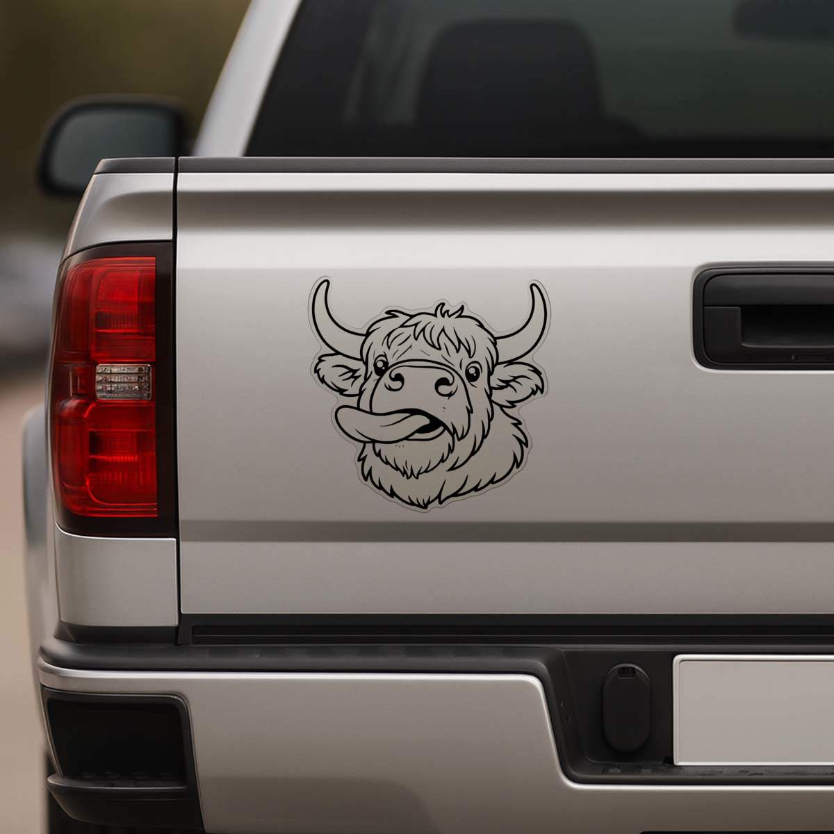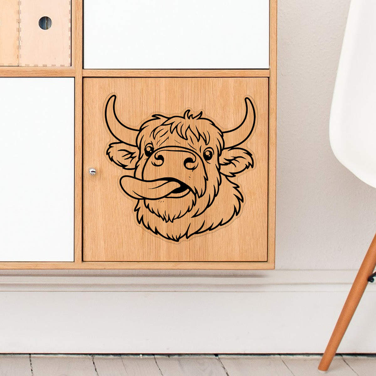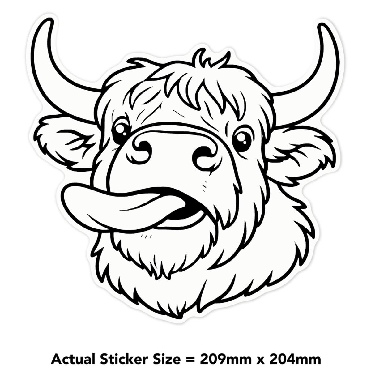 'Highland Cow with Tongue Sticking Out' Clear Premium Vinyl Decal Stickers – Waterproof, Durable & Easy to Apply - For Car Bumpers, Windows, Bins & More - Large (210mm) (DC00164058