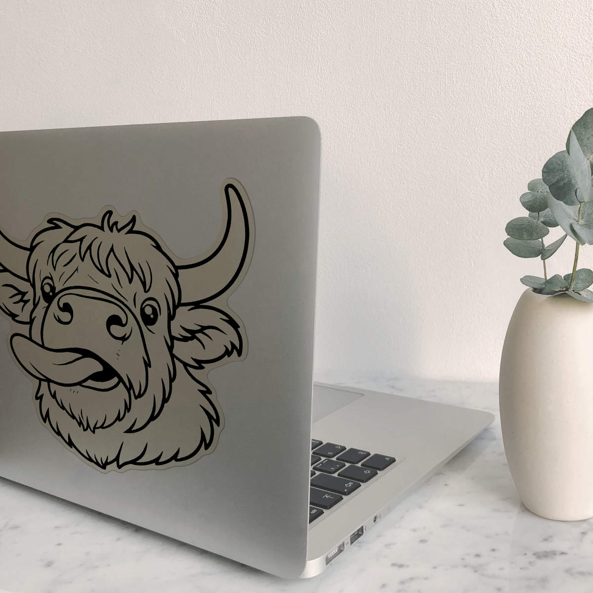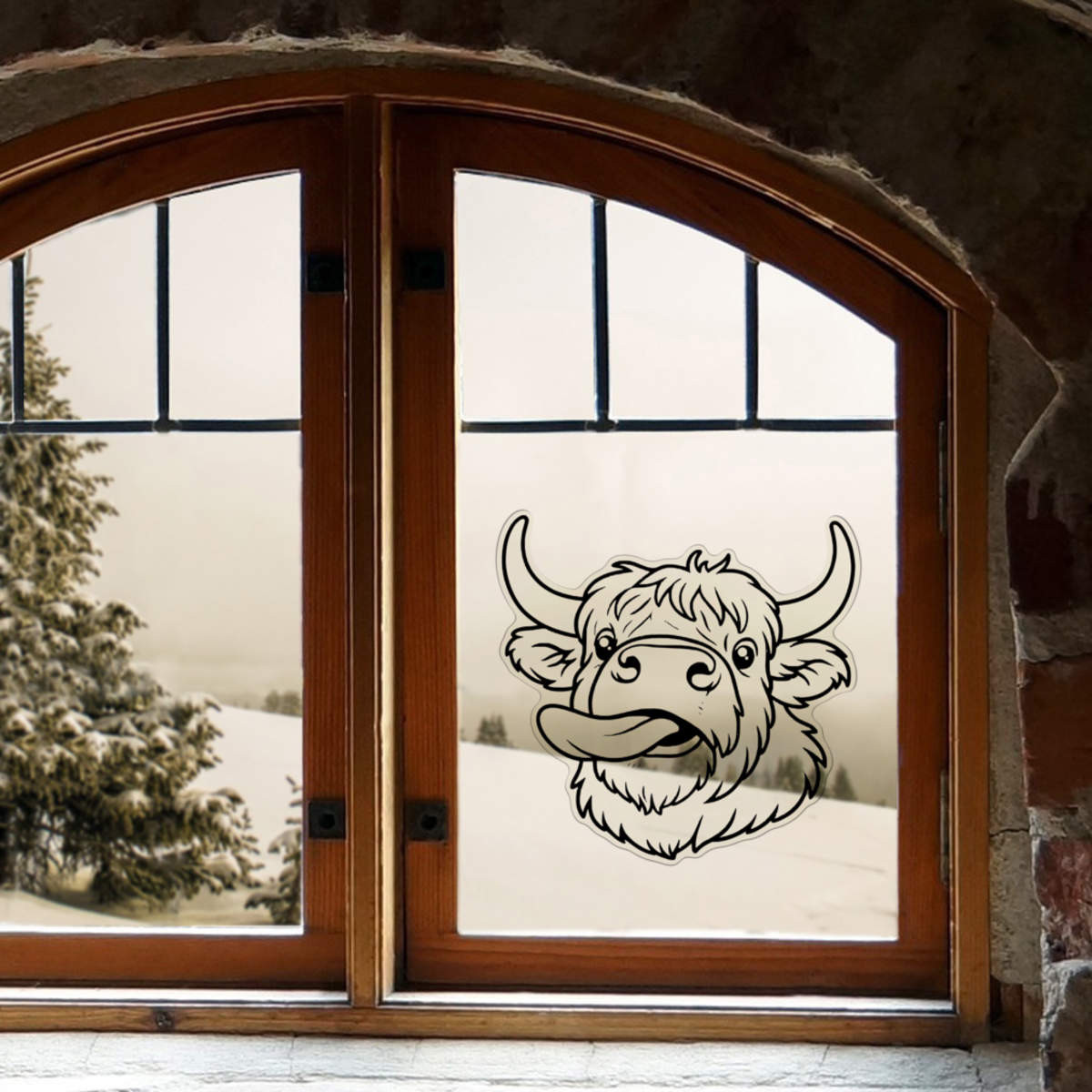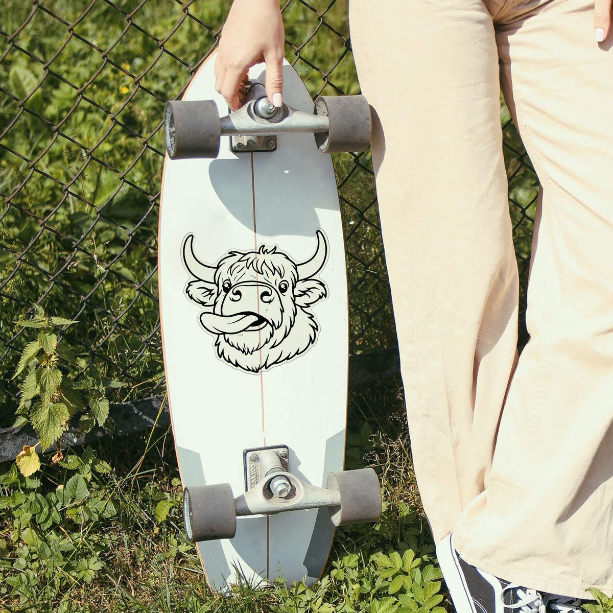 'Highland Cow with Tongue Sticking Out' Clear Premium Vinyl Decal Stickers – Waterproof, Durable & Easy to Apply - For Car Bumpers, Windows, Bins & More - Large (210mm) (DC00164058