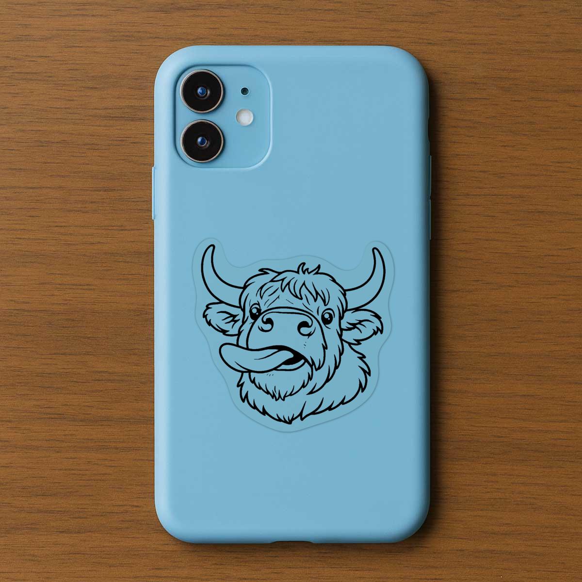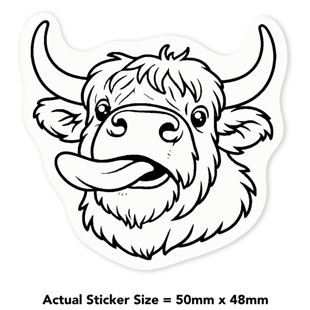 'Highland Cow with Tongue Sticking Out' Clear Sticker Decals (DC057825)
