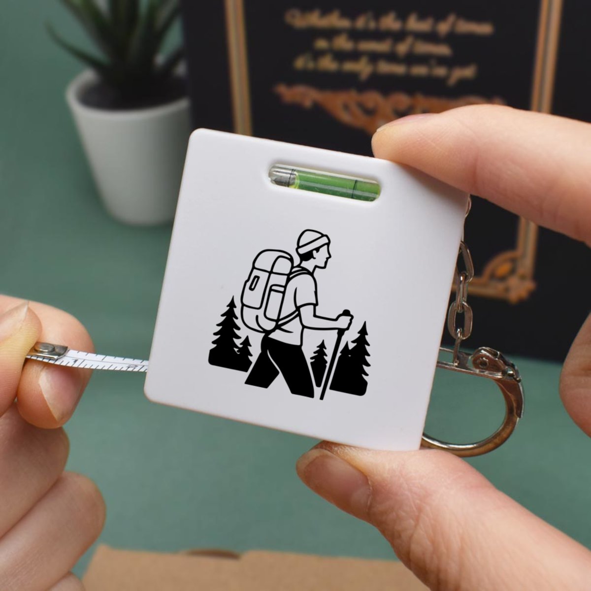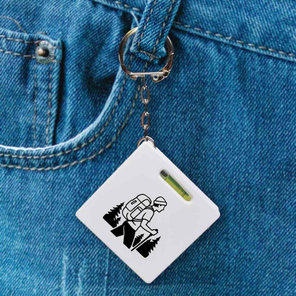 This multifunctional tool offers both a tape measure and spirit level in one handy little accessory. The retractable, 1 metre tape measure has both imperial and metric units, while the flat edges around its plastic casing provide the ability to check both vertical and horizontal surfaces with a mini spirit level. The compact and lightweight design makes it easy to carry around; simply attach with the keychain provided and whip it out when needed. Each keyring tape measure tool is printed on one side with a unique design.
