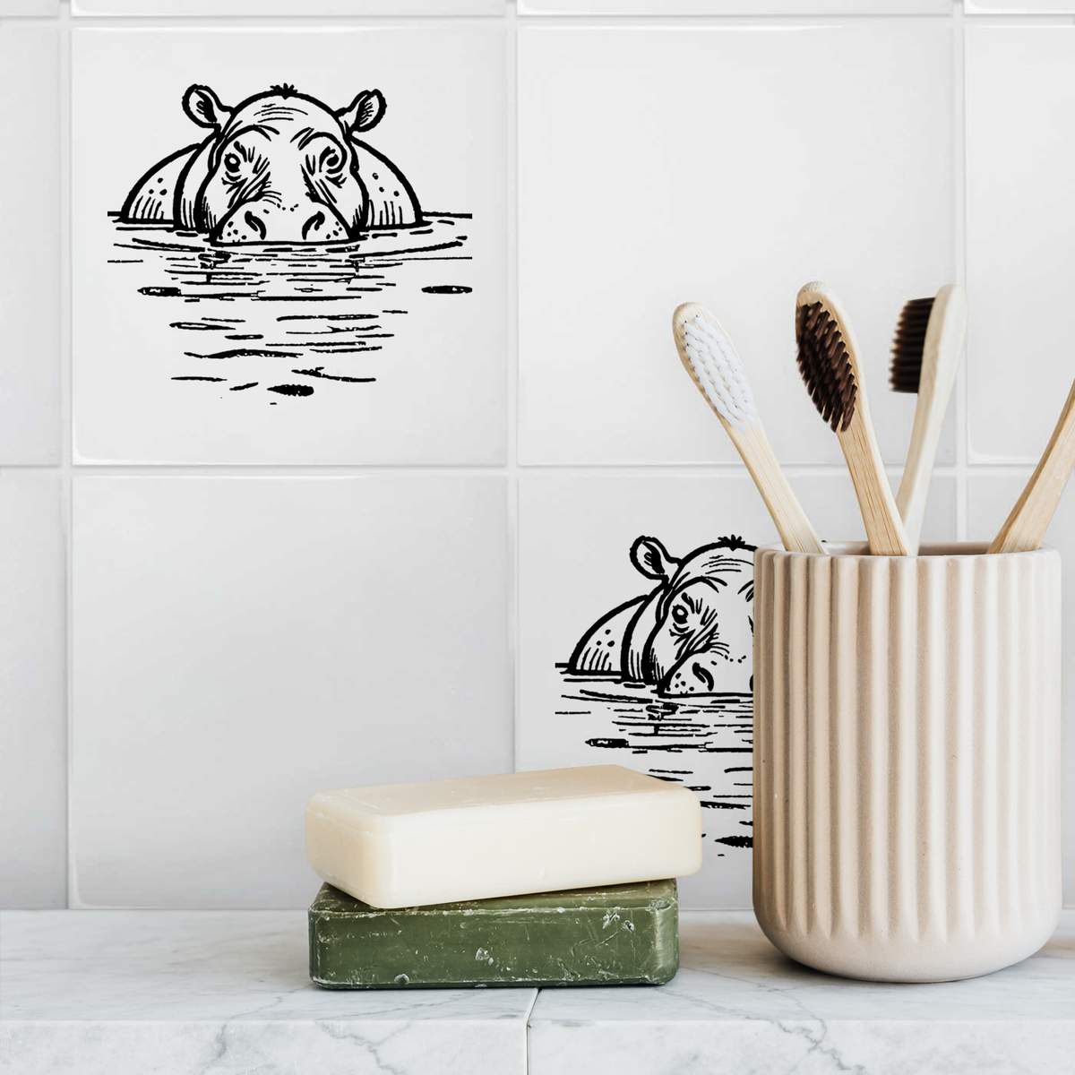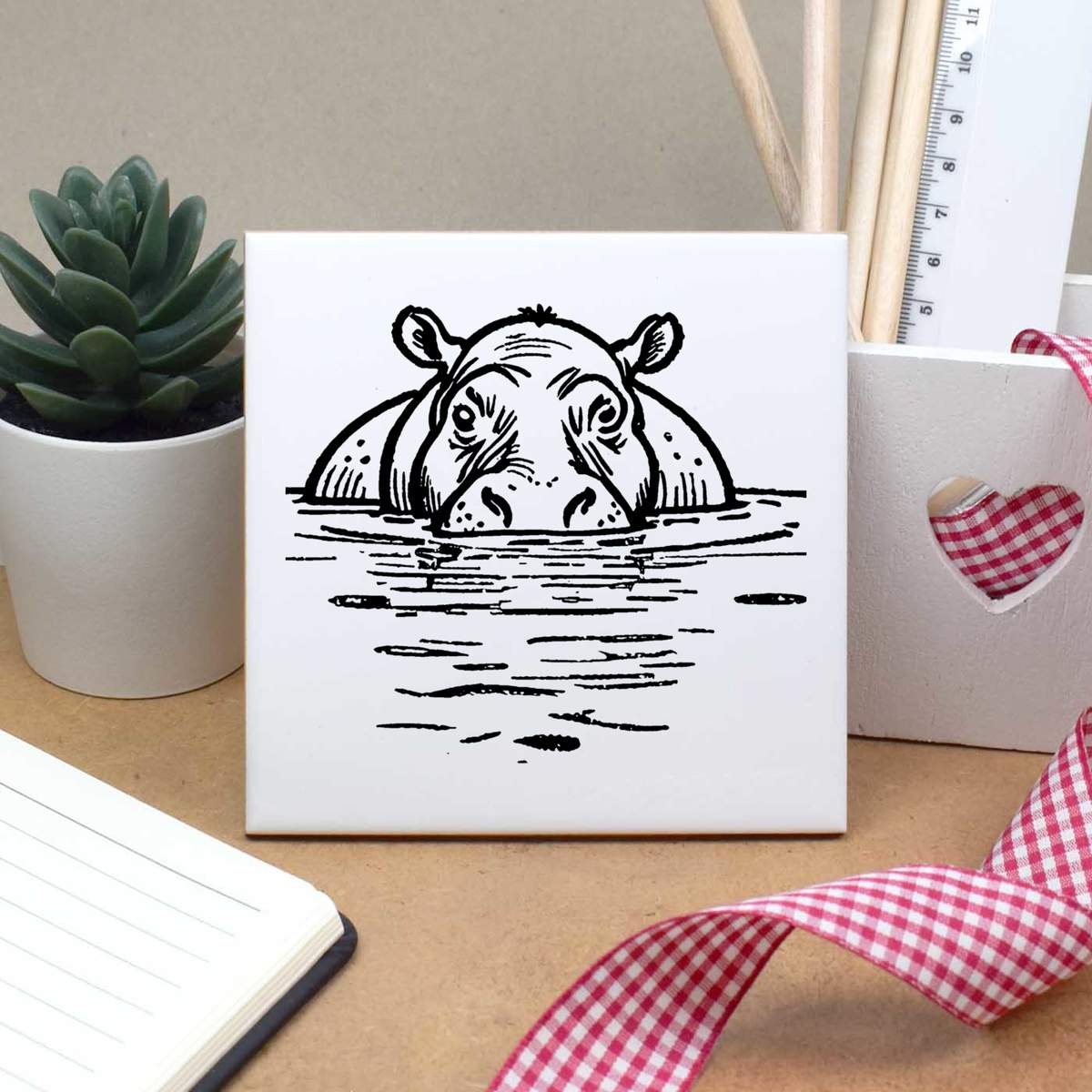 'Hippopotamus in a Pool' 108mm Square Ceramic Tile (TD00026481)