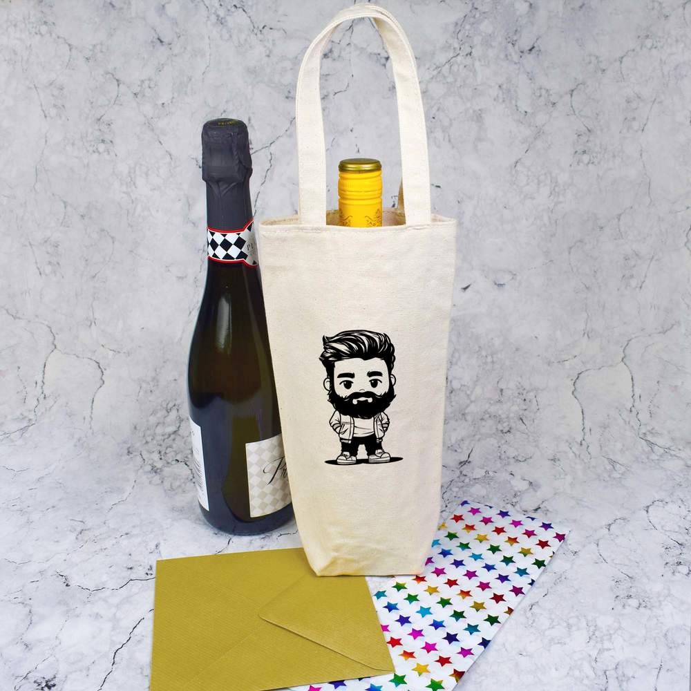 Give a gift in style with this wonderful wine bottle bag. Printed one side with a unique design, this bag oozes with class. Each one is made from thick natural canvas and its high quality finish means it can be used again and again; perfect for picnics and adventures where a bottle of the finest wine is required. This bottle bag can comfortably carry a single standard wine or champagne bottle, up to 1.5 litres, but please check the bag dimensions are suitable before purchasing.