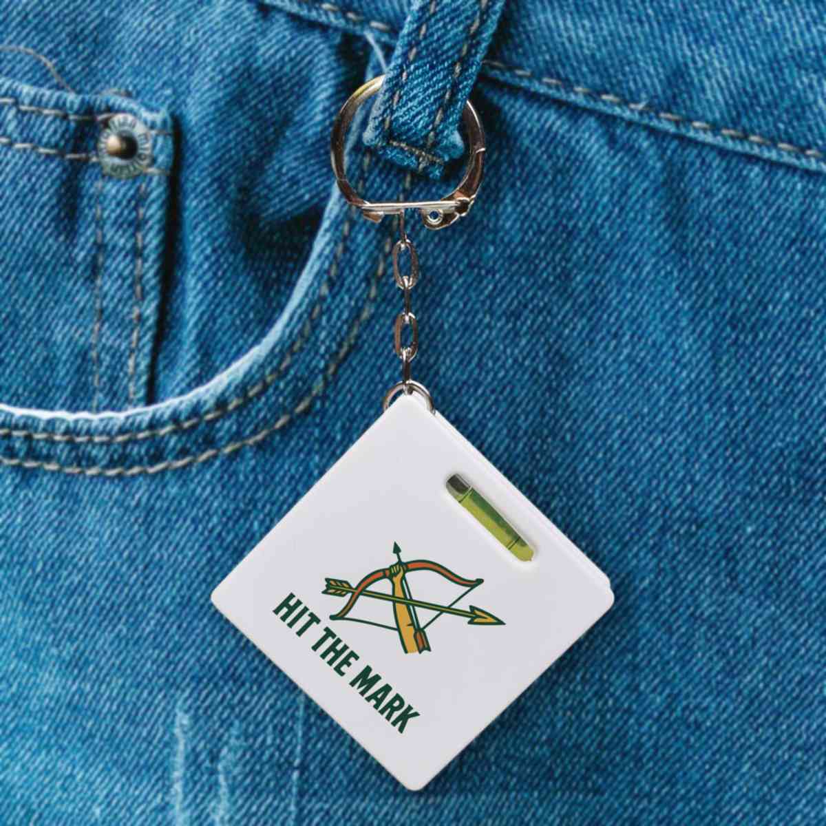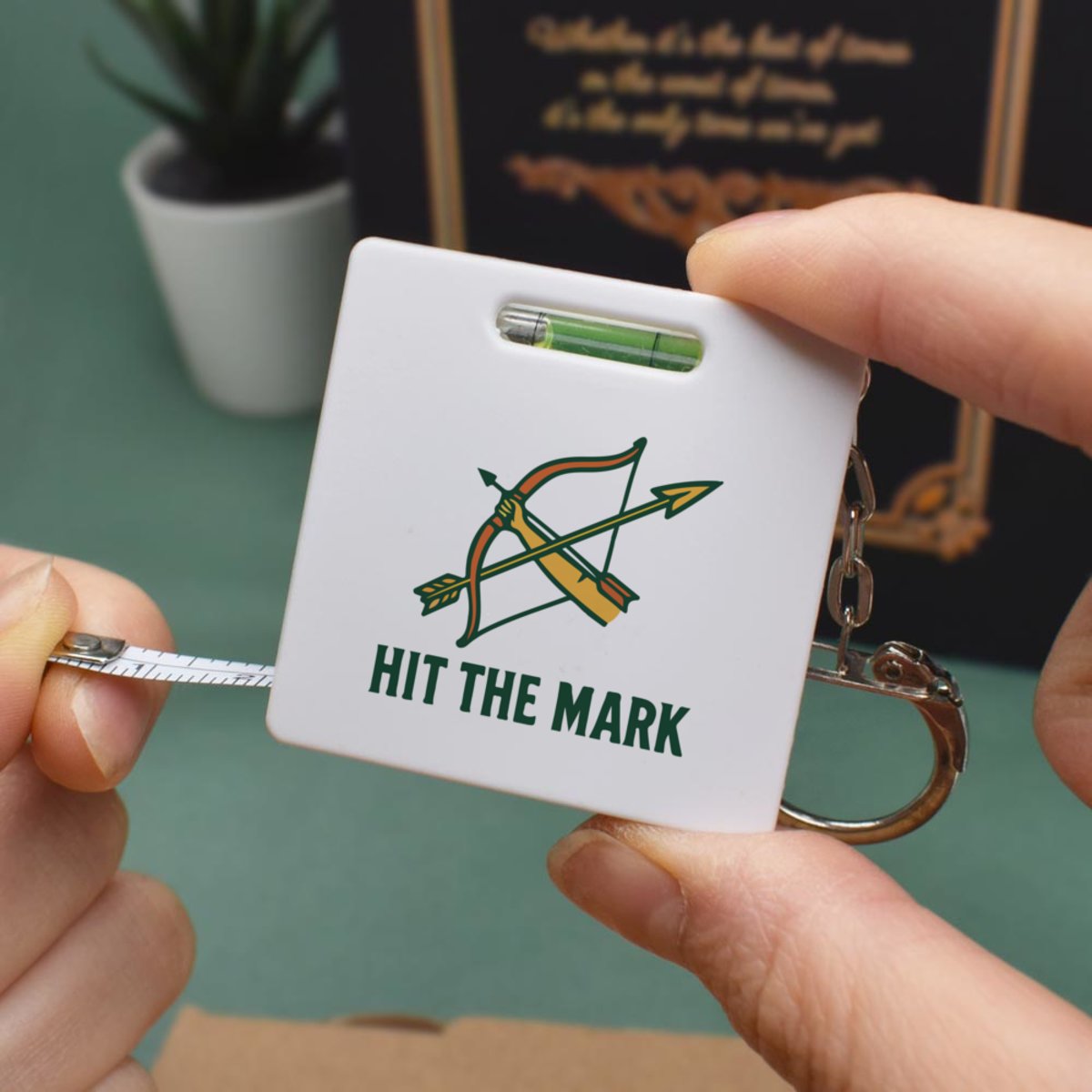 This multifunctional tool offers both a tape measure and spirit level in one handy little accessory. The retractable, 1 metre tape measure has both imperial and metric units, while the flat edges around its plastic casing provide the ability to check both vertical and horizontal surfaces with a mini spirit level. The compact and lightweight design makes it easy to carry around; simply attach with the keychain provided and whip it out when needed. Each keyring tape measure tool is printed on one side with a unique design.