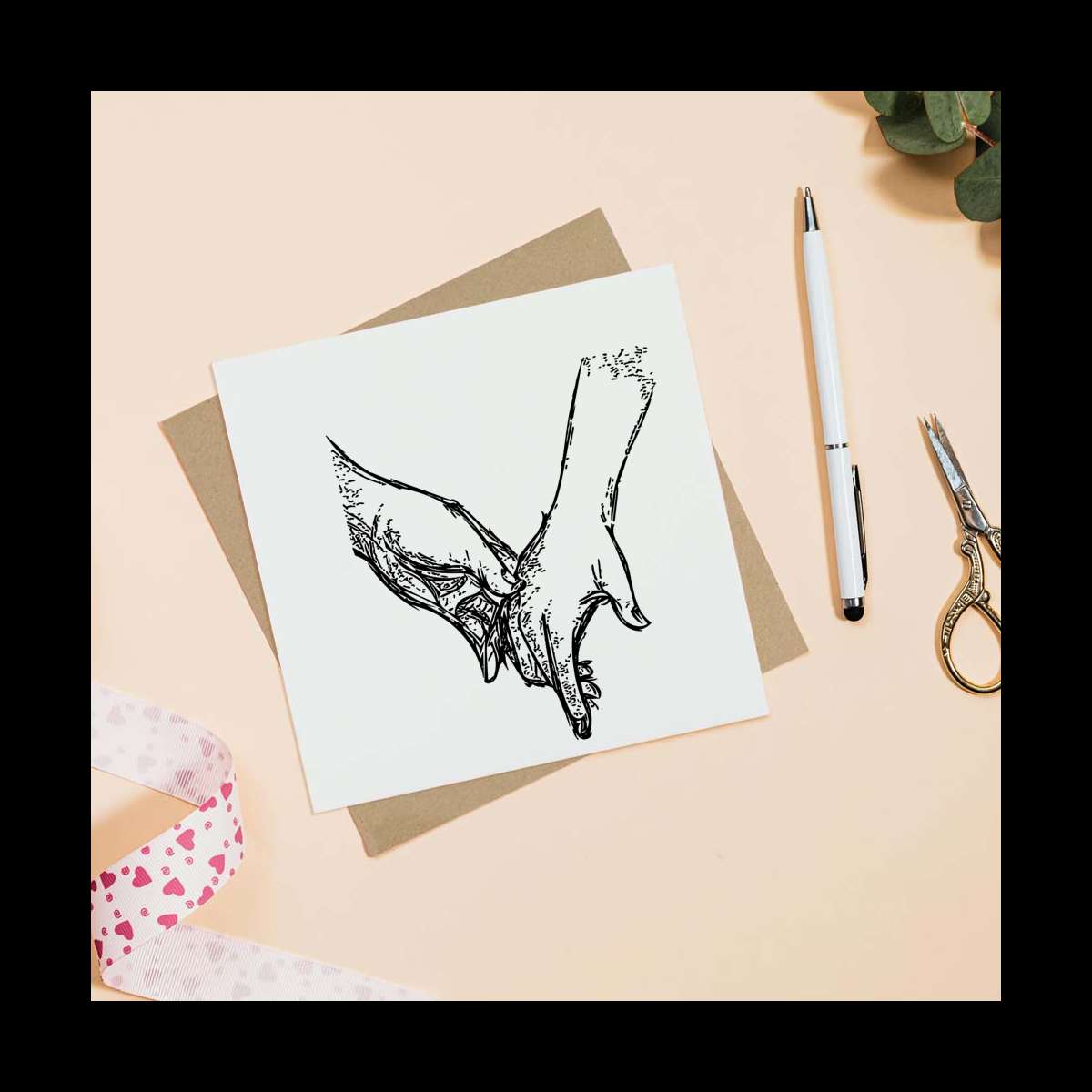 - Square greeting card supplied with a recycled brown envelope