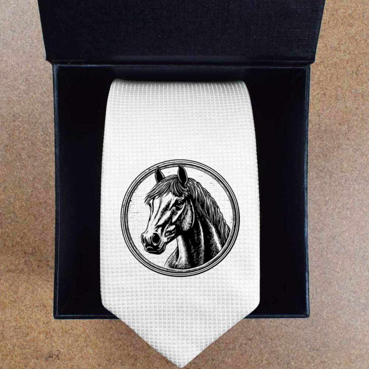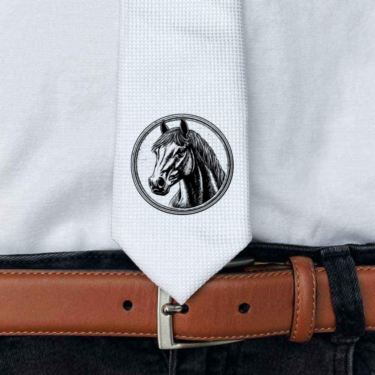 'Horse Portrait with Circle Frame' White Tie / Necktie with Gift Box (AT00024137)