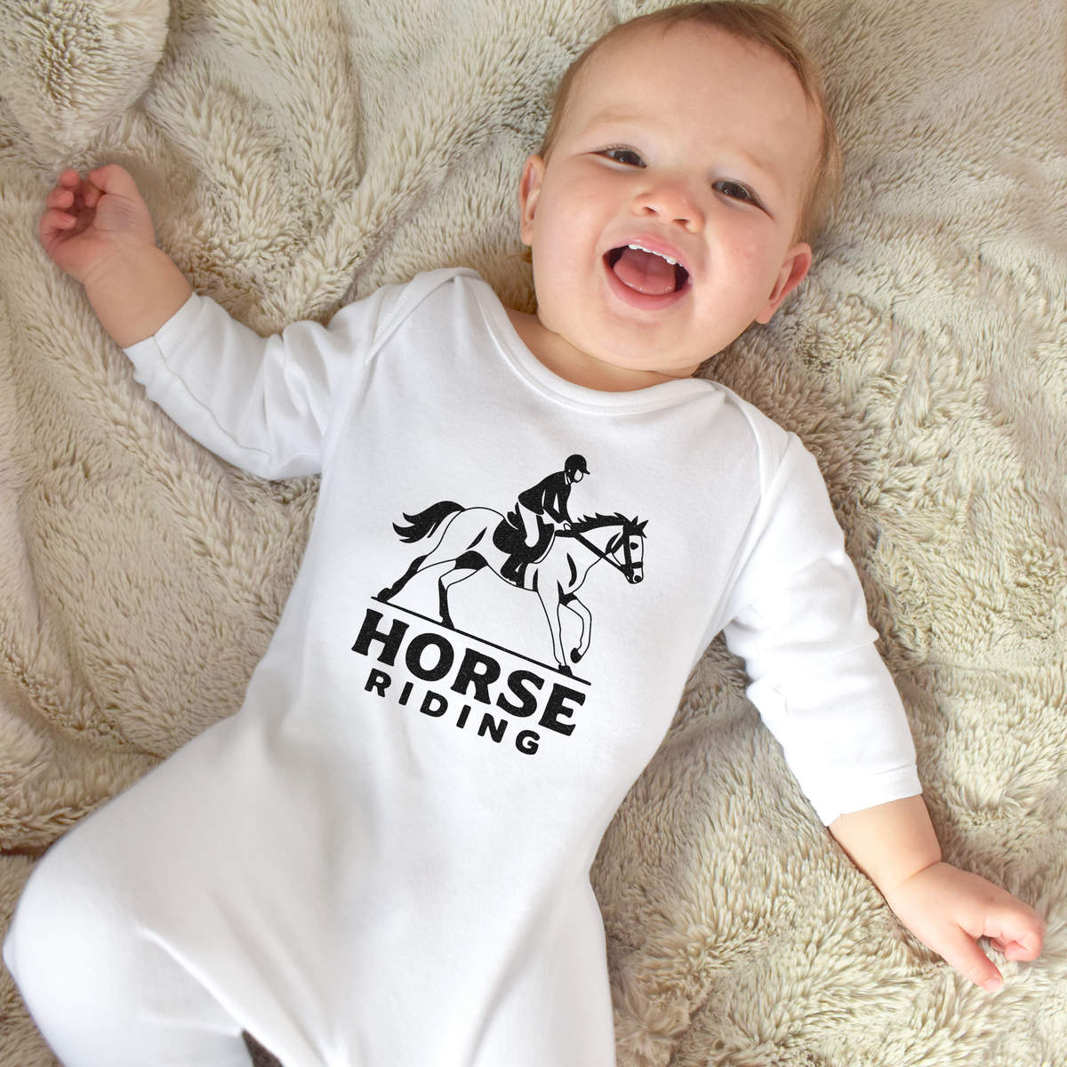 Little ones can sleep peacefully in this super soft romper sleepsuit. Our unisex jumpsuits are made from 100% cotton and are printed on the front with a unique design. Practical functions include popper fastenings for ease of changing and built-in feet.