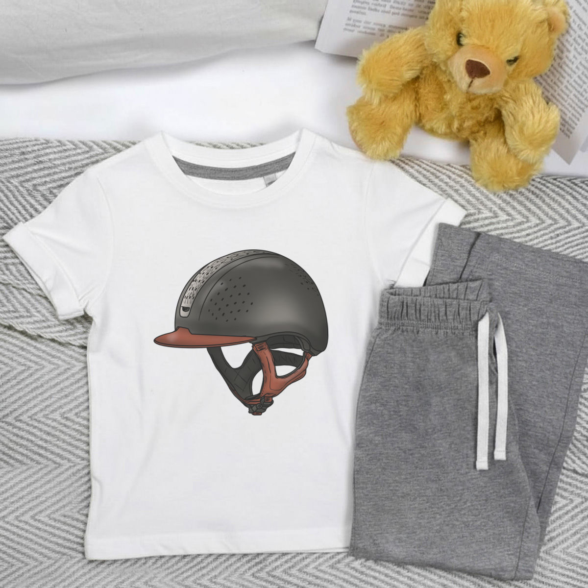 'Horse Riding Helmet' Kids Cotton Pyjama Set – Comfortable Children's Nightwear, Sleepwear and Loungewear - Unisex for Boys and Girls – Grey (KP035586)