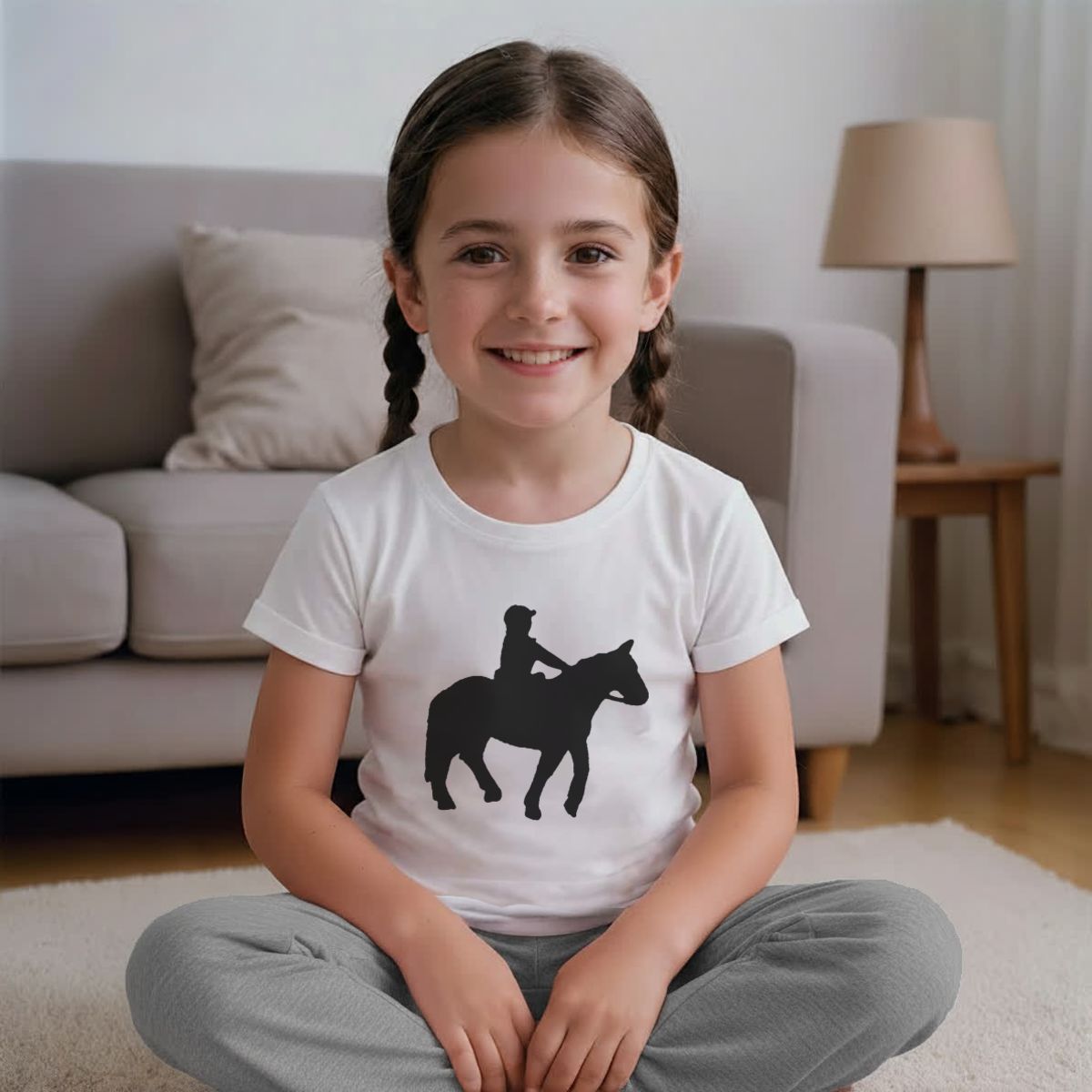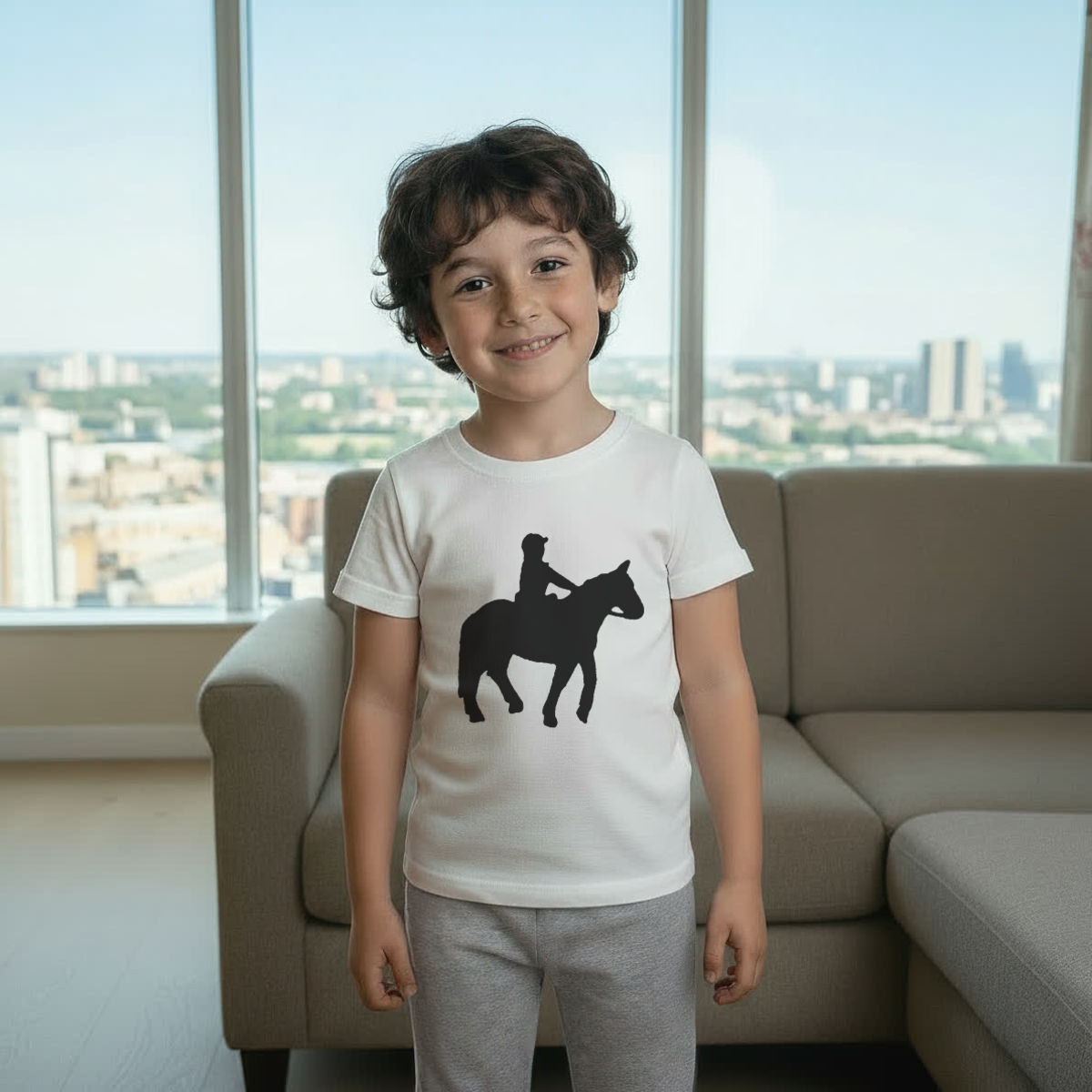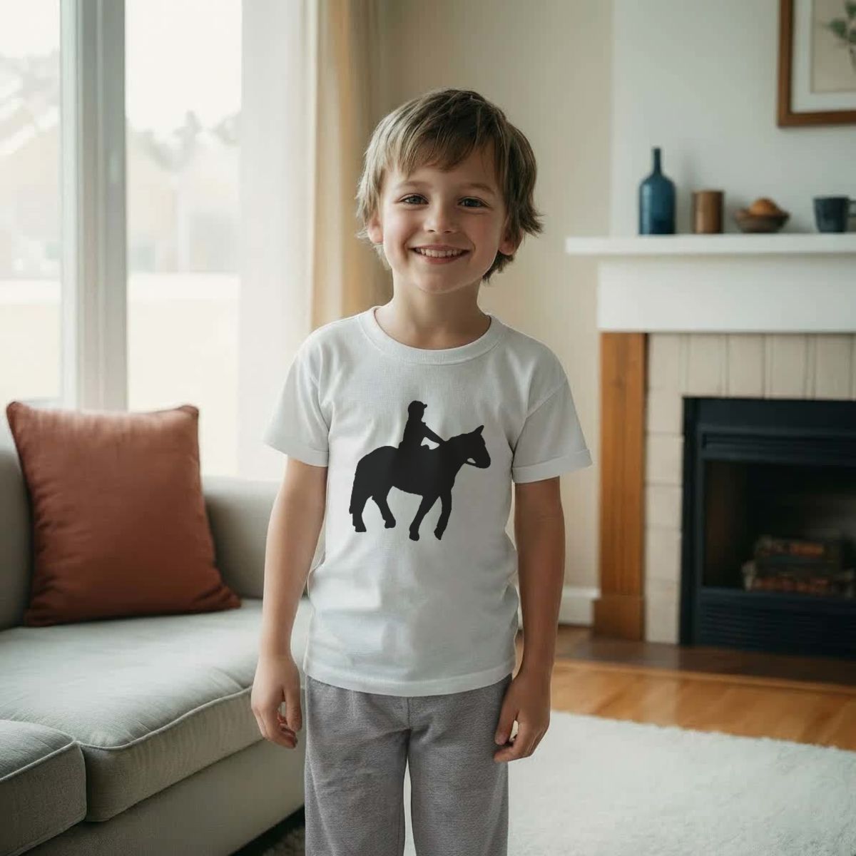 'Horse Riding' Kids Cotton Pyjama Set – Comfortable Children's Nightwear, Sleepwear and Loungewear - Unisex for Boys and Girls - Grey, 5-6 Years (KP00057554)