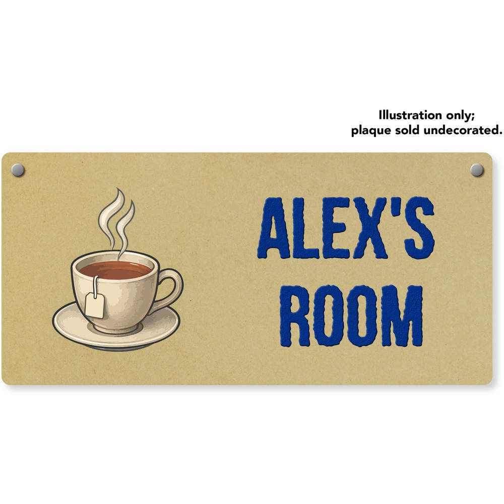 The plaques are made from a slim 3mm MDF - making them durable, but also very light. They have two holes, one in each of the top corners, and can either be screwed in place or have rope threaded through them to hang them. Neither screws nor rope are included with the plaque.
