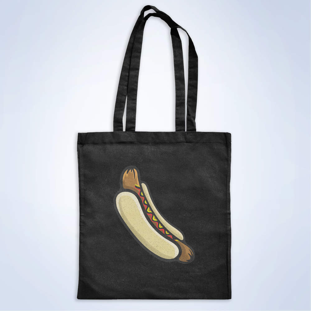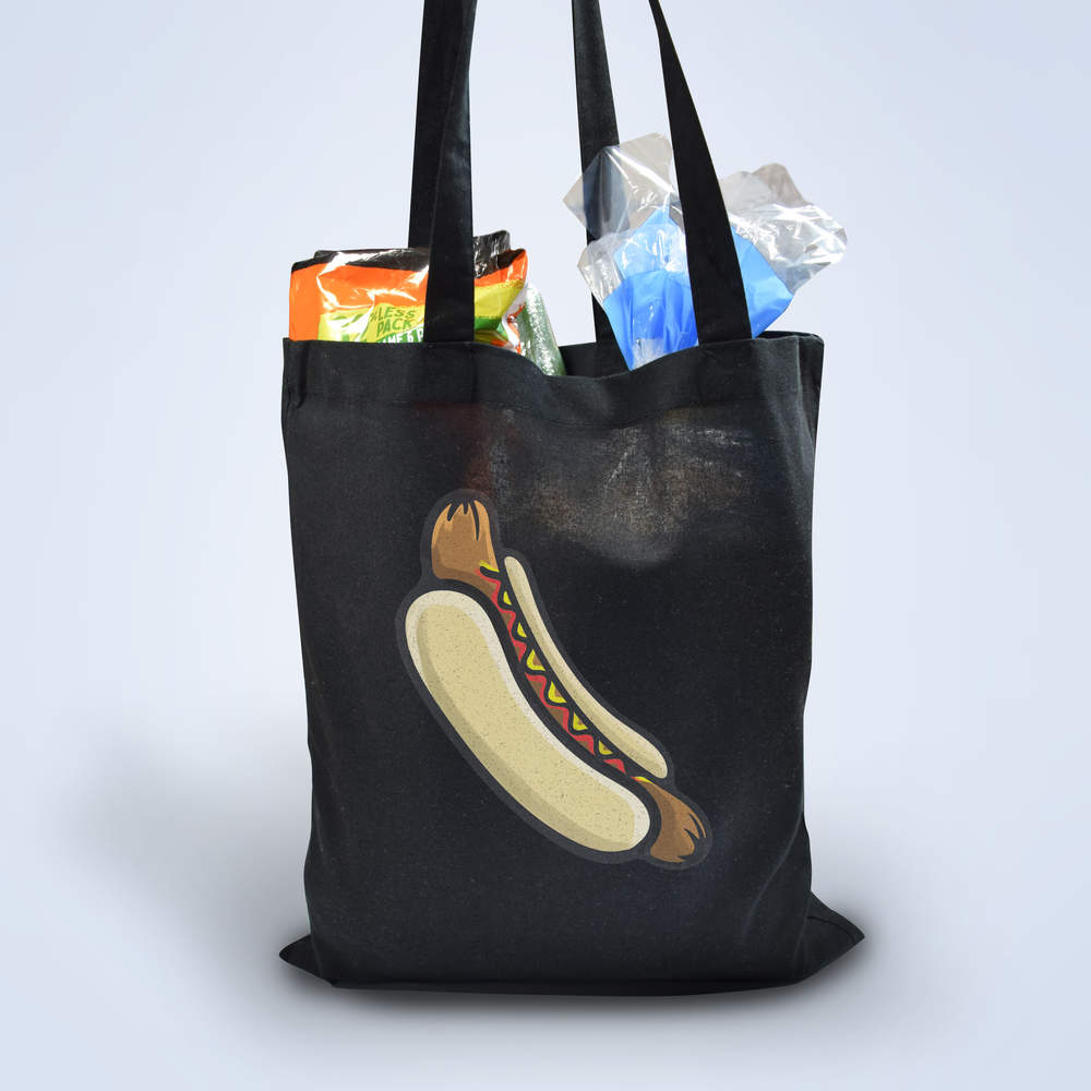 'Hot Dog' Classic Black Tote Shopper Bag (ZB00010889)