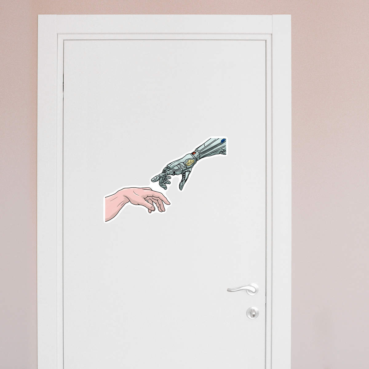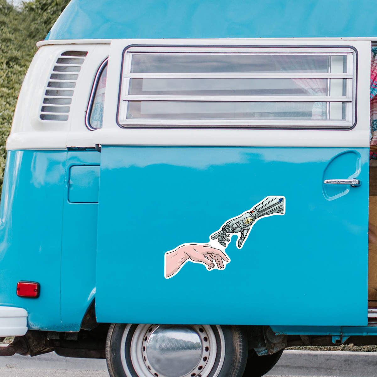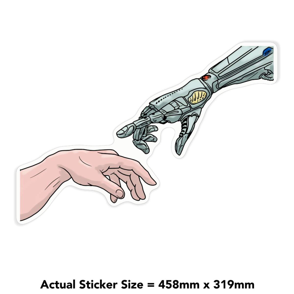'Human & Robot Hands Touch' White Premium Vinyl Decal Sticker – Waterproof, Durable & Easy to Apply - For Car Bumpers, Windows, Bins & More - XL (460mm) (DW00100131)