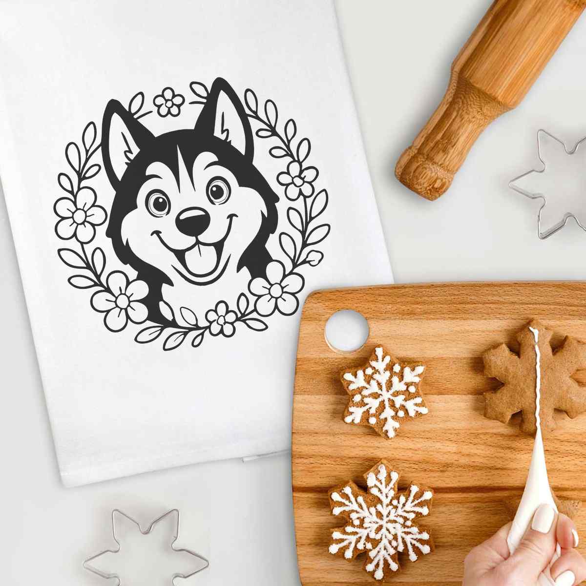 'Dog, Floral, Wreath, Breed, Pedigree, Puppy, Pet, Friend, Cute, Happy, Friendly, Husky'