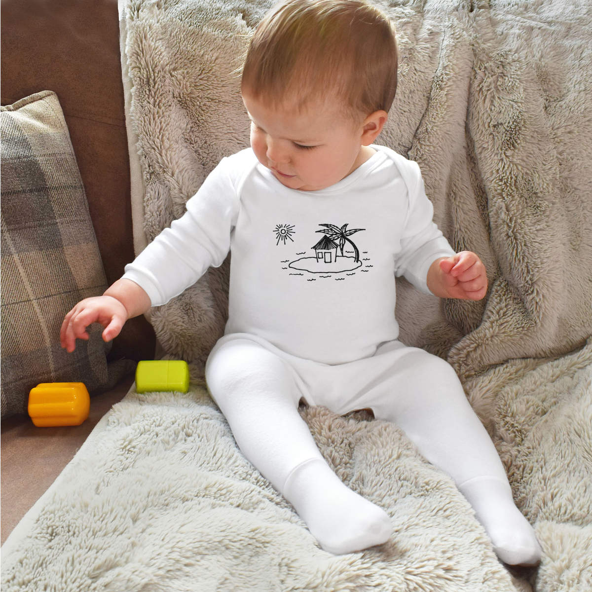 'Hut On Desert Island' Baby Romper Jumpsuits / Sleep suits (SS036371)