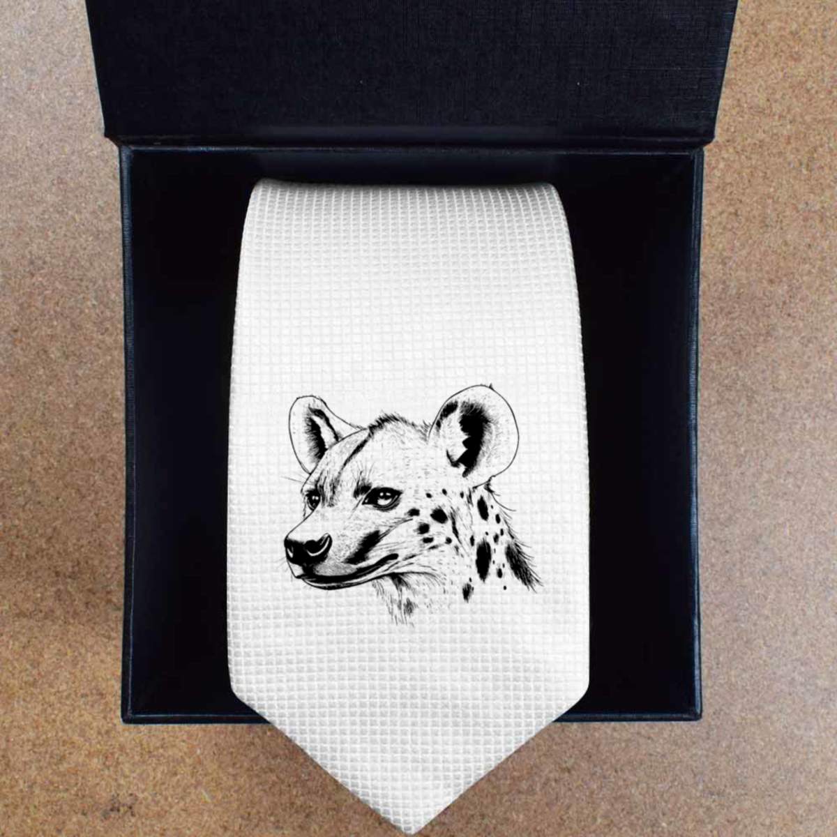 This stylish slim white tie is guaranteed to add class to any outfit. Printed on the front with a design from one of our talented designers, these ties are perfect for formal events, special occasions or making a statement at the office.