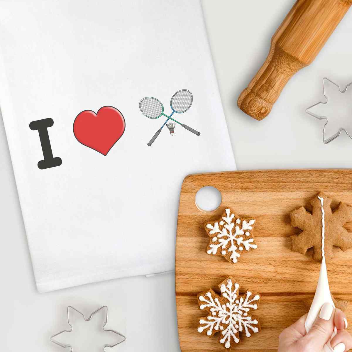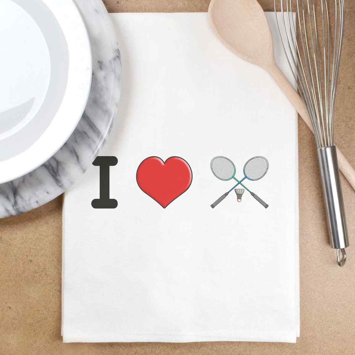 'I Love Badminton' Cotton Tea Towel / Dish Cloth (TW034272)