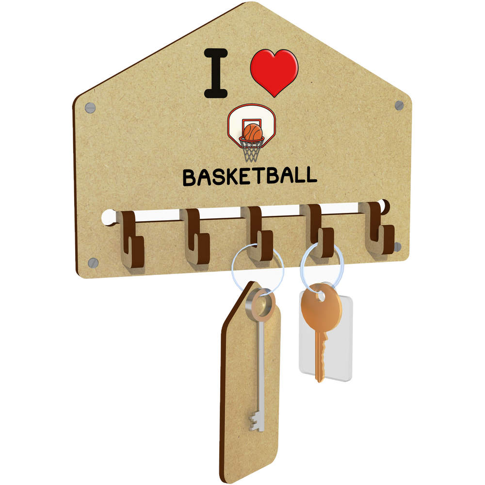 'I Love Basketball' Wall Mounted Key Hooks / Holder (WH00056716)