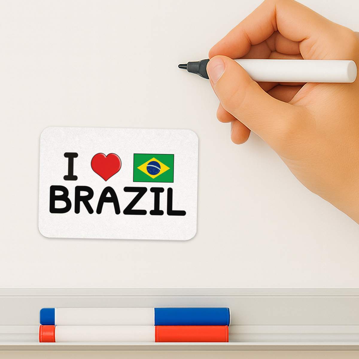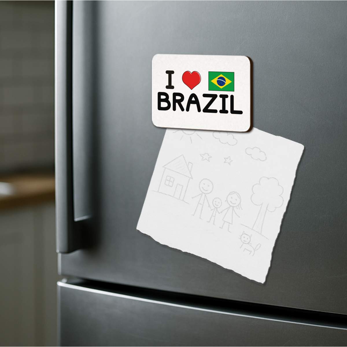 'I Love Brazil' Rectangular Fridge Magnet - Decorative Refrigerator & Whiteboard Magnet for Home, Kitchen or Office - 70mm x 49mm (FM00047355)