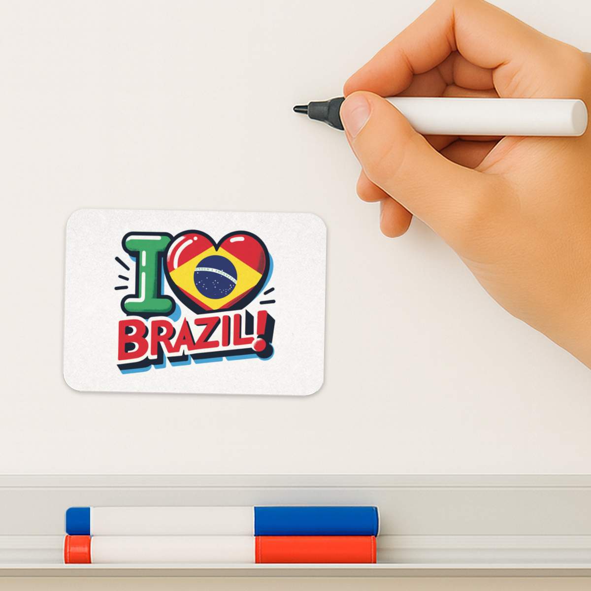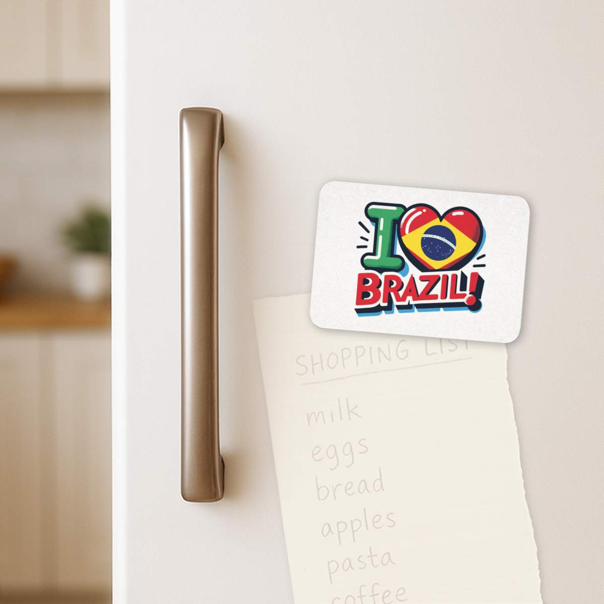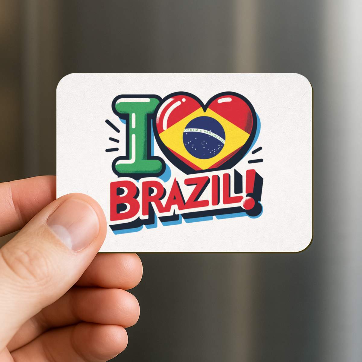 'I Love Brazil!' Rectangular Fridge Magnet - Decorative Refrigerator & Whiteboard Magnet for Home, Kitchen or Office - 70mm x 49mm (FM00054614)