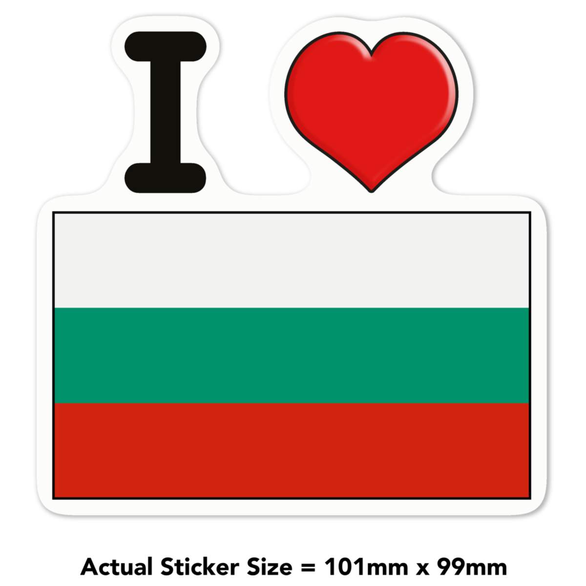 'I Love Bulgaria' White Premium Vinyl Decal Sticker – Waterproof, Durable & Easy to Apply - For Car Bumpers, Windows, Bins & More - Medium (100mm) (DW00074466)