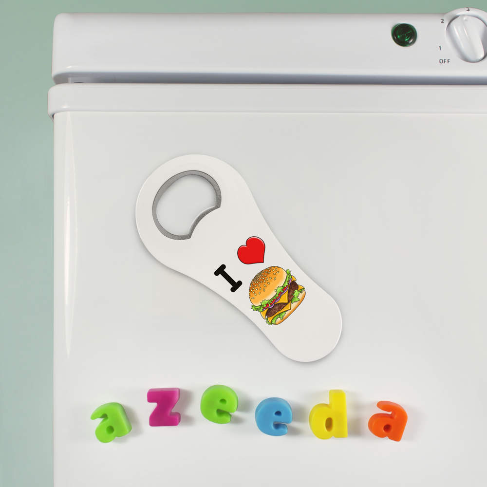 'I Love Burgers' Bottle Opener Fridge Magnet (BO00069718)