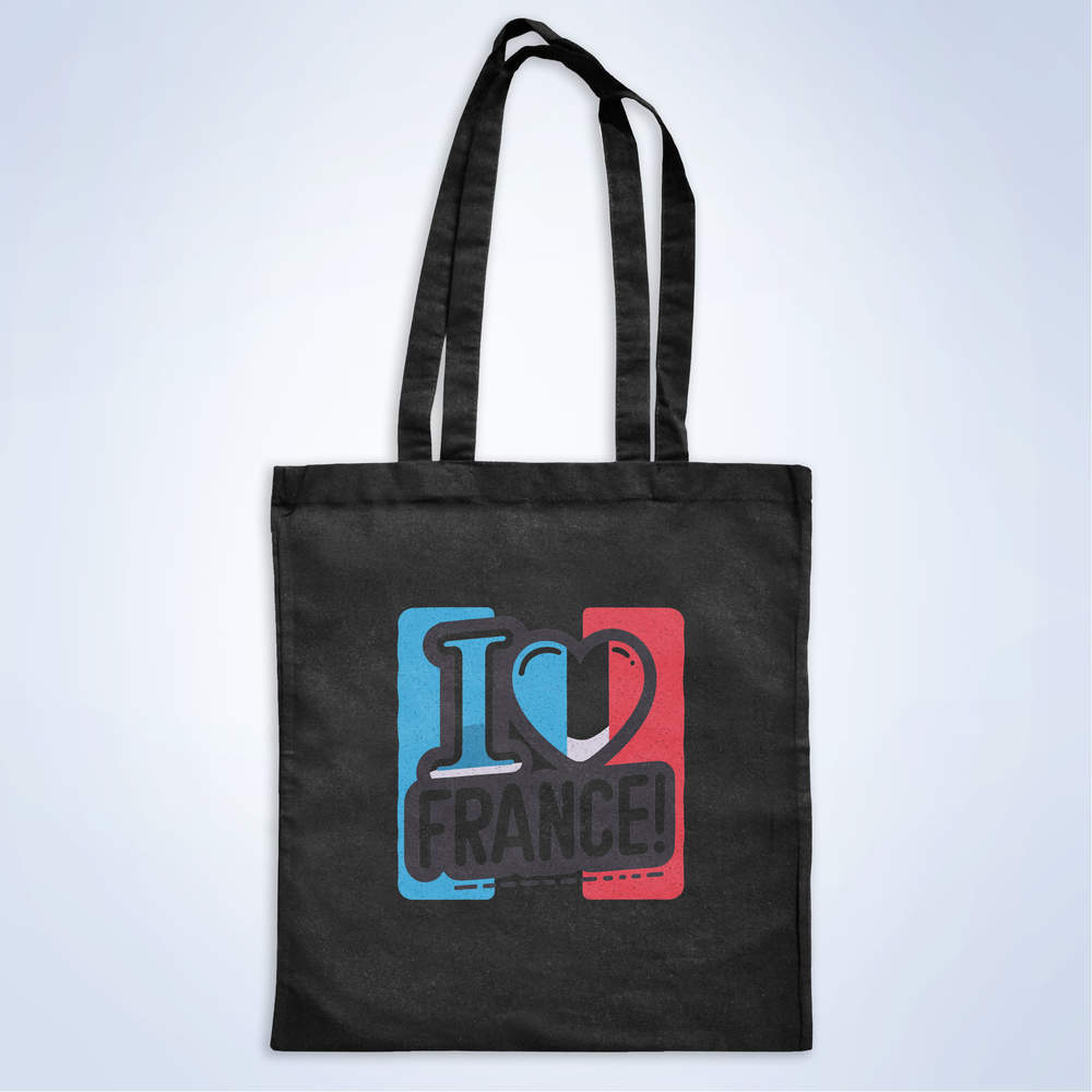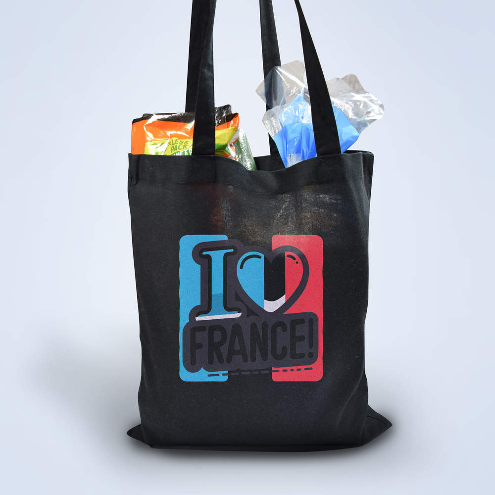 'I Love France!' Classic Black Tote Shopper Bag (ZB00023377)