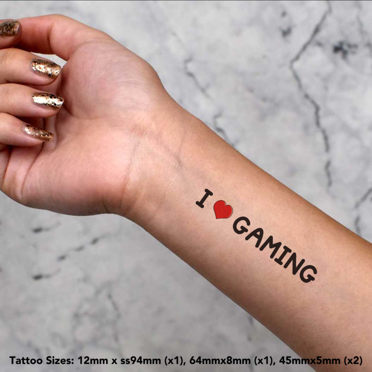 'I Love Gaming' Temporary Tattoos - Water Resistant, Skin-Safe, Non-Toxic Transfers (TO032431)