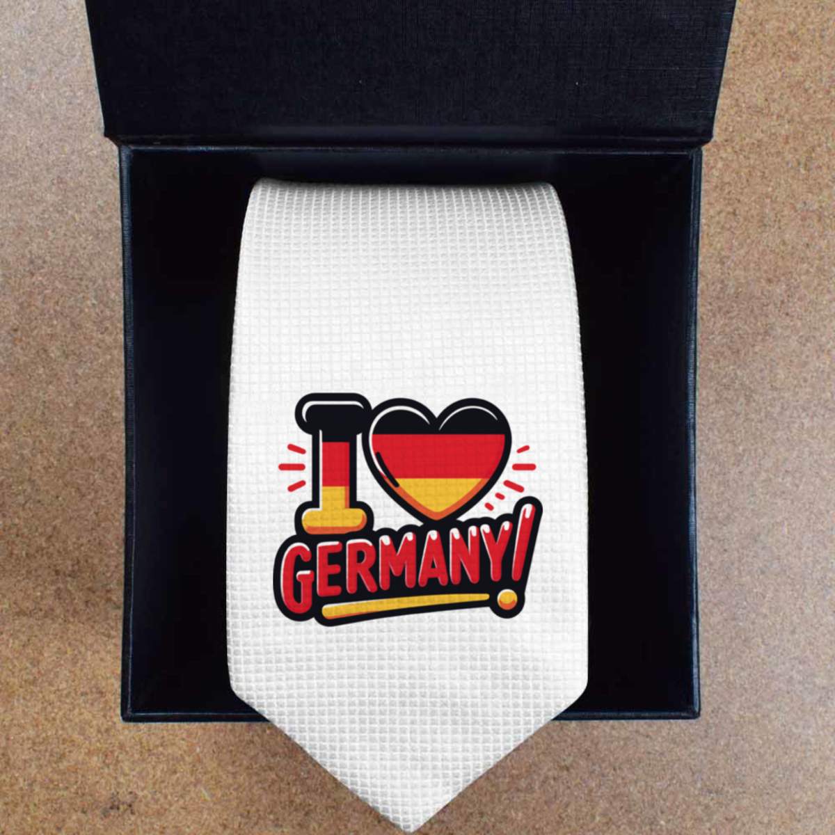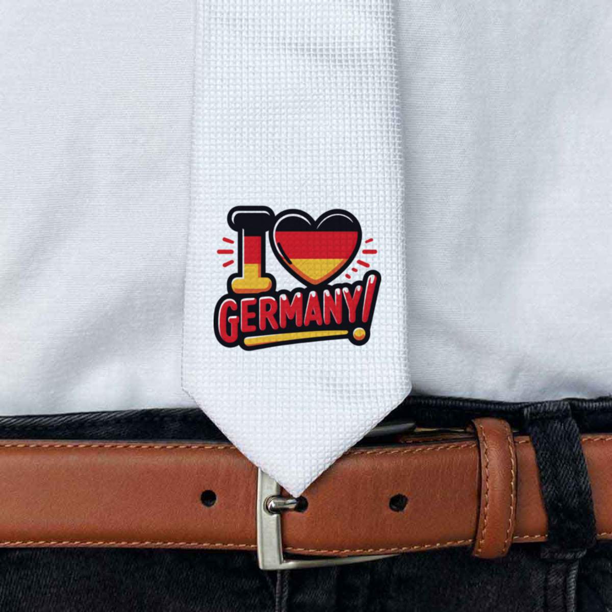 This stylish slim white tie is guaranteed to add class to any outfit. Printed on the front with a design from one of our talented designers, these ties are perfect for formal events, special occasions or making a statement at the office.