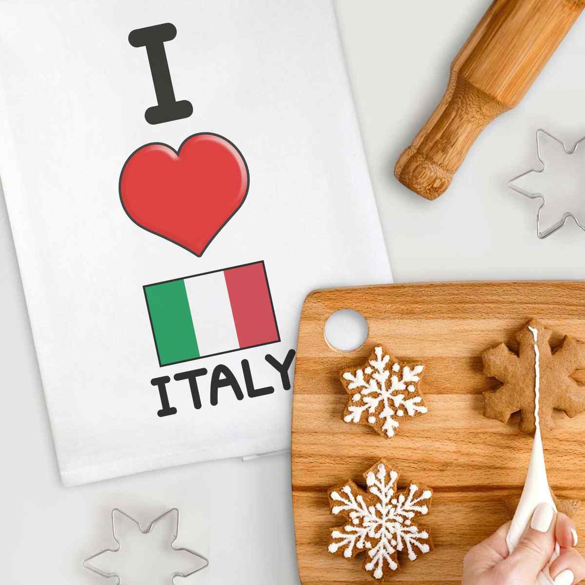 'I Love Italy' Cotton Tea Towel / Dish Cloth (TW032528)