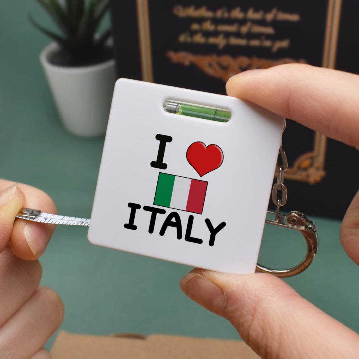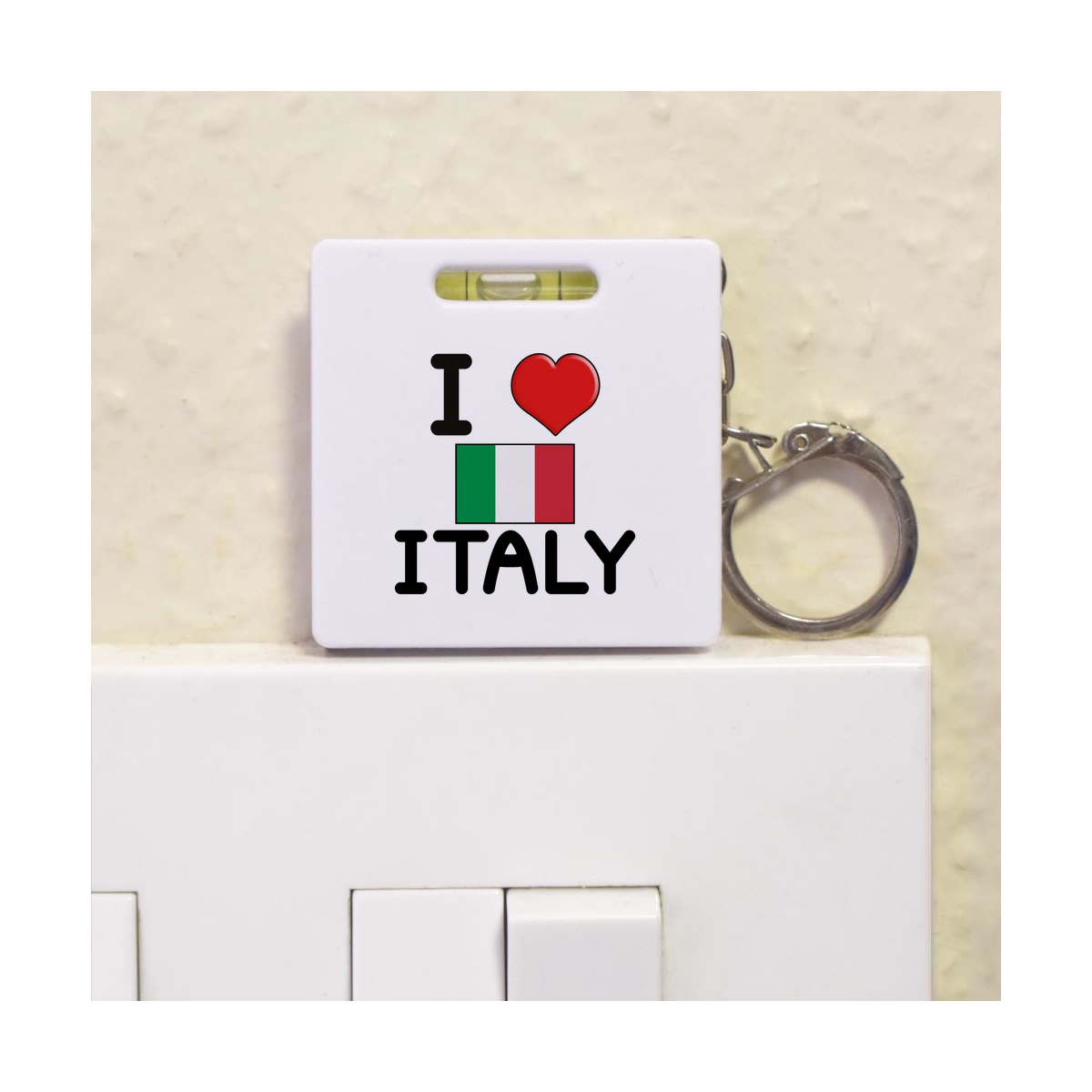 This multifunctional tool offers both a tape measure and spirit level in one handy little accessory. The retractable, 1 metre tape measure has both imperial and metric units, while the flat edges around its plastic casing provide the ability to check both vertical and horizontal surfaces with a mini spirit level. The compact and lightweight design makes it easy to carry around; simply attach with the keychain provided and whip it out when needed. Each keyring tape measure tool is printed on one side with a unique design.