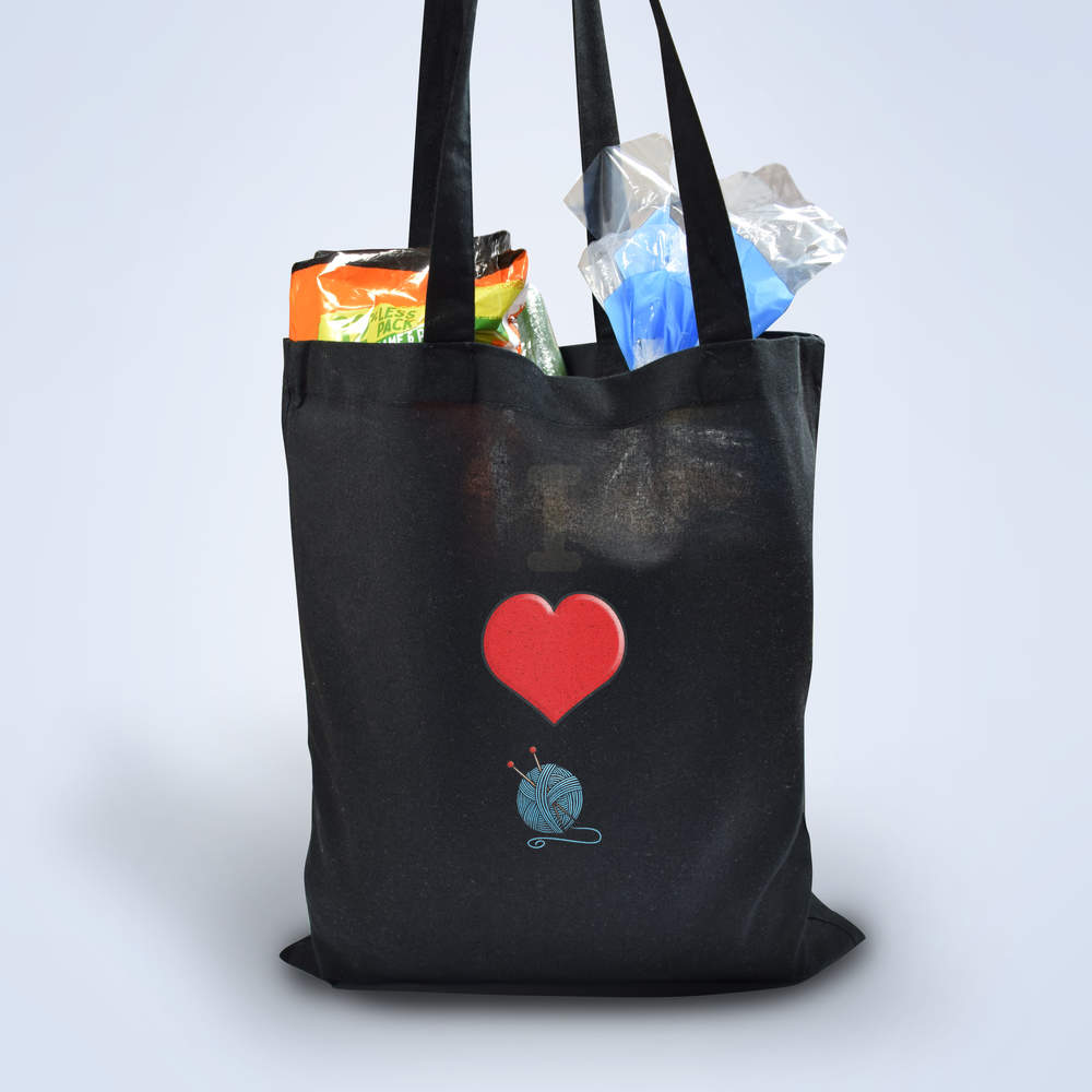 'I Love Knitting' Classic Black Tote Shopper Bag (ZB00015585)