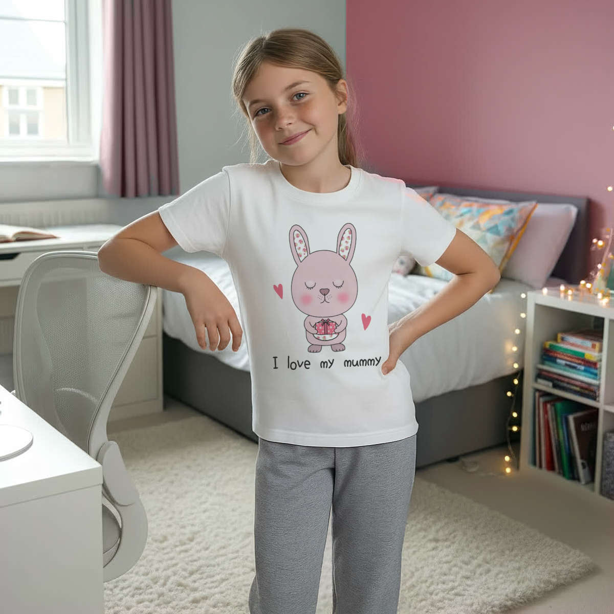 'I love my mummy' Kids Cotton Pyjama Set – Comfortable Children's Nightwear, Sleepwear and Loungewear - Unisex for Boys and Girls - Grey, 11-13 Years (KP00165789)