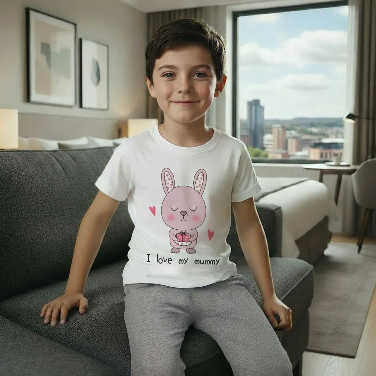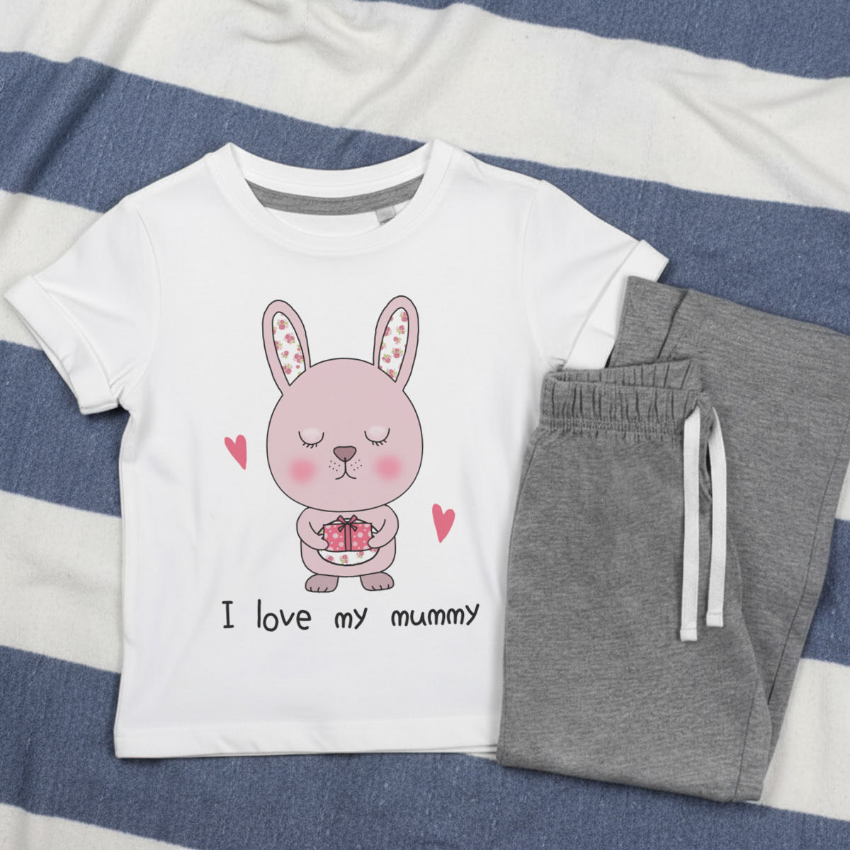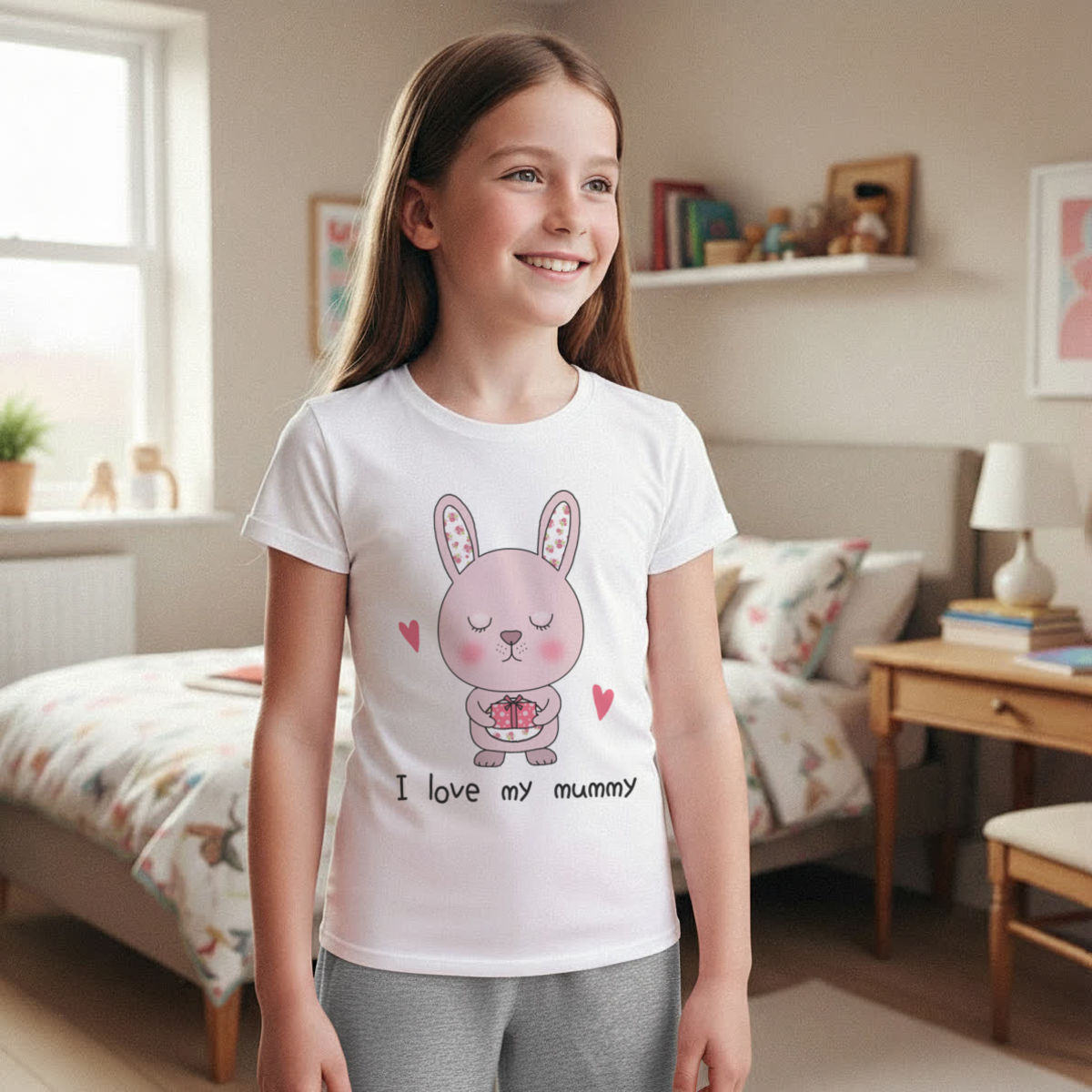 'I love my mummy' Kids Cotton Pyjama Set – Comfortable Children's Nightwear, Sleepwear and Loungewear - Unisex for Boys and Girls - Grey, 9-10 Years (KP00145252)