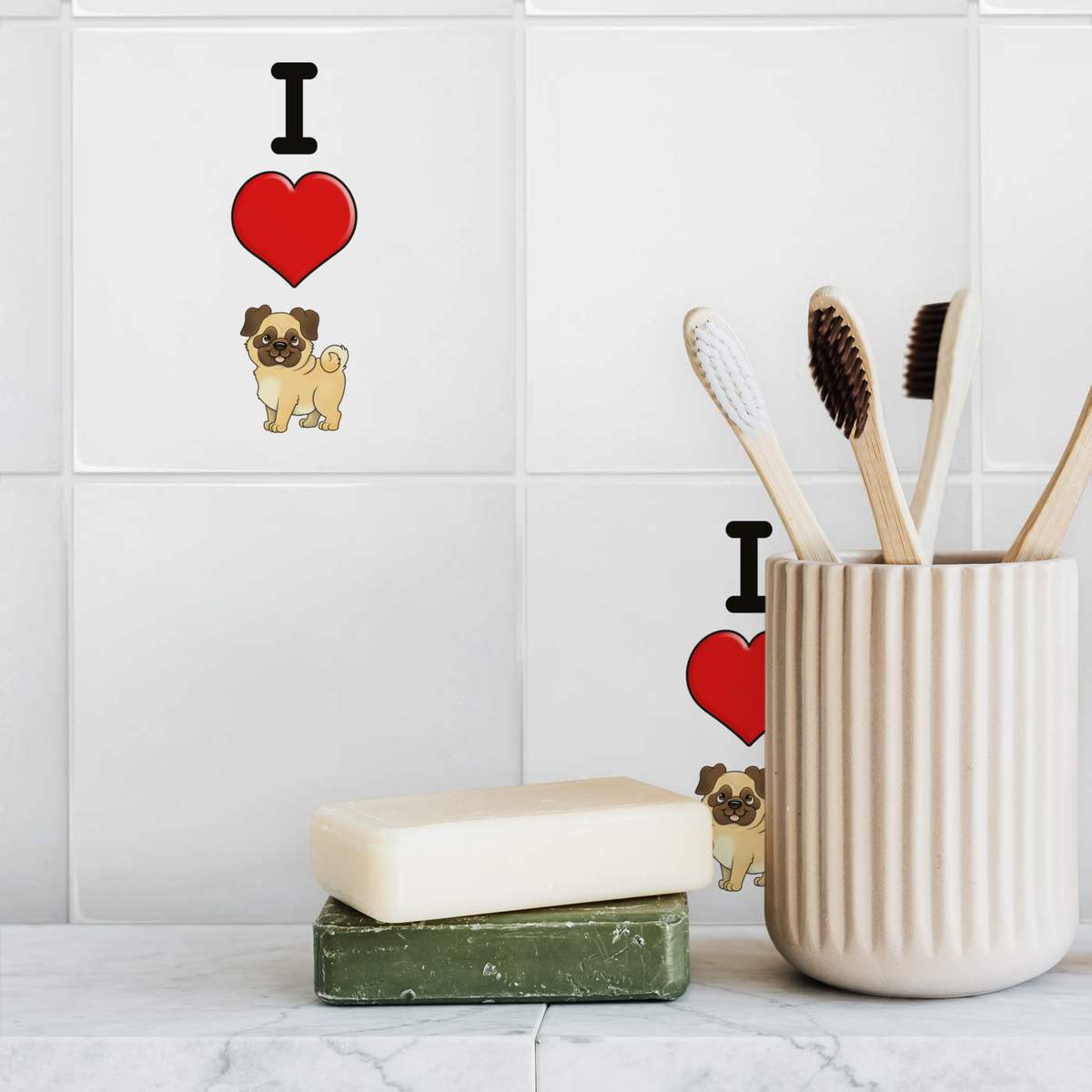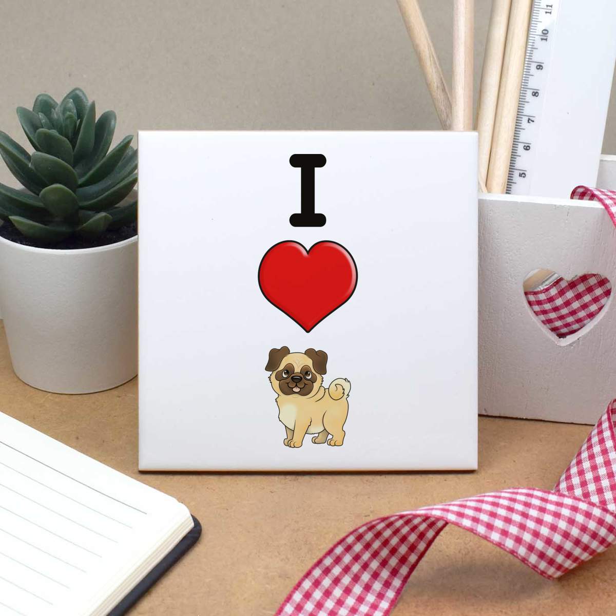 'I Love Pugs' 108mm Square Ceramic Tile (TD00014577)