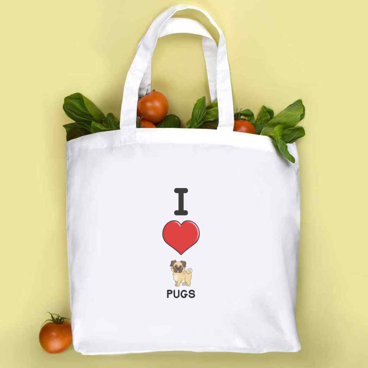 'I Love Pugs' Tote Shopping Bag For Life (BG00068209)