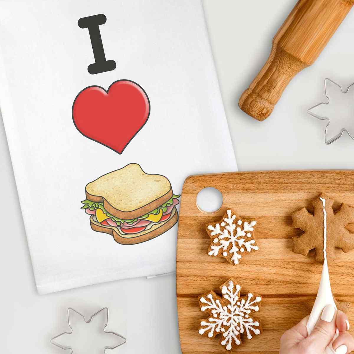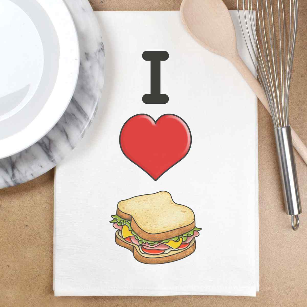 'I Love Sandwiches' White Cotton Tea Towel / Dish Cloth (TW00023754)