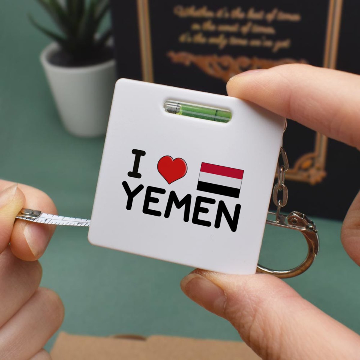 This multifunctional tool offers both a tape measure and spirit level in one handy little accessory. The retractable, 1 metre tape measure has both imperial and metric units, while the flat edges around its plastic casing provide the ability to check both vertical and horizontal surfaces with a mini spirit level. The compact and lightweight design makes it easy to carry around; simply attach with the keychain provided and whip it out when needed. Each keyring tape measure tool is printed on one side with a unique design.