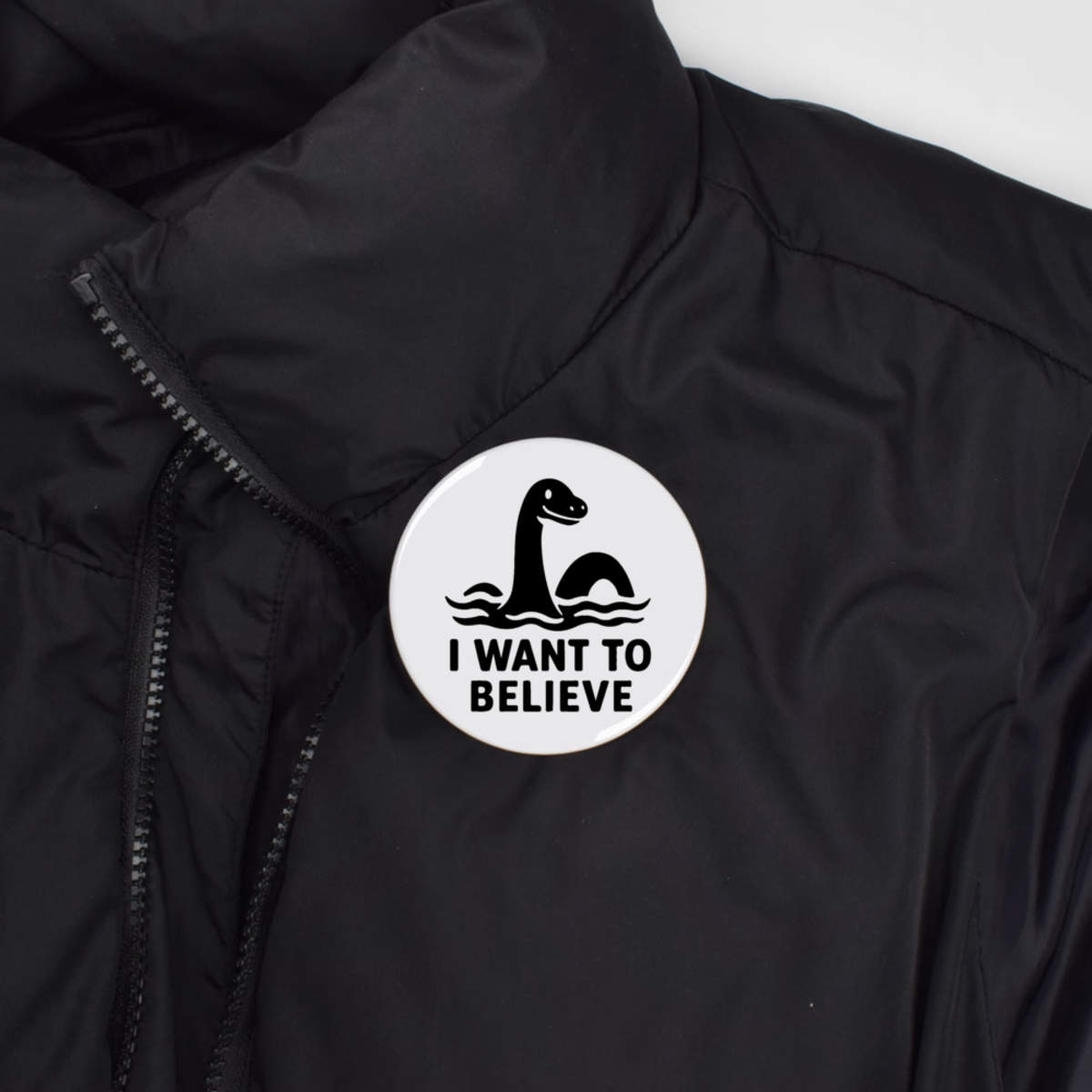 'This whimsical design features the famous lake monster, accompanied by the classic phrase 'I WANT TO BELIEVE.' It captures the spirit of mystery, legend, and the enduring hope that some secrets of the natural world are still waiting to be discovered. It is an ideal piece for anyone who loves folklore, mythology, and a bit of playful wonder.'