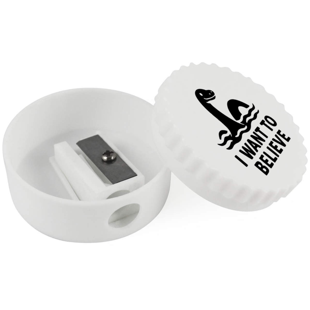 Keep your pencils sharp and ready to use with this sturdy, single hole sharpener featuring one of our awesome designs. The twisting lid conceals the hole to the blade and removes completely to allow shavings to be discarded.