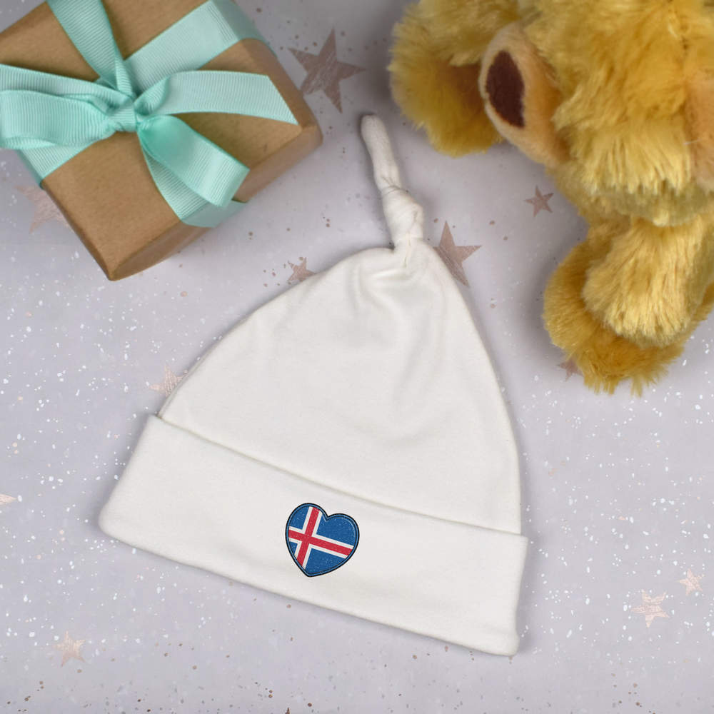 Keep little ones cosy and stylish with this super soft beanie hat. Our baby beanie hats have a knotted top and are printed on the turnover with a unique design. Made from 100% cotton, it can be machine washed and still retain its shape. This beanie hat has a stretch fit so one size fits all, with an approximate circumference of 32cm, it's ideal for babies up to 12 months old.