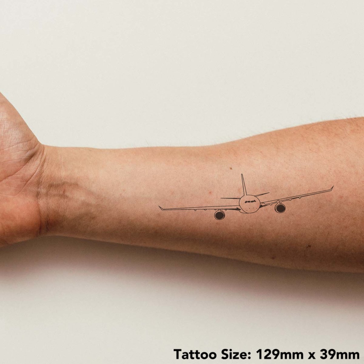 'Incoming Airplane' Temporary Tattoo - Commercial Airliner Head-On View Line - Water Resistant, Skin-Safe, Non-Toxic Transfer (TO00017440)