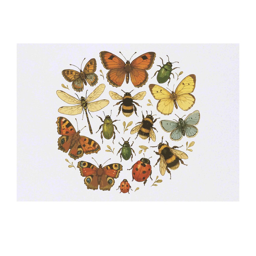 'A detailed and colorful collection of realistic insect illustrations, celebrating the beauty and diversity of the bug world'