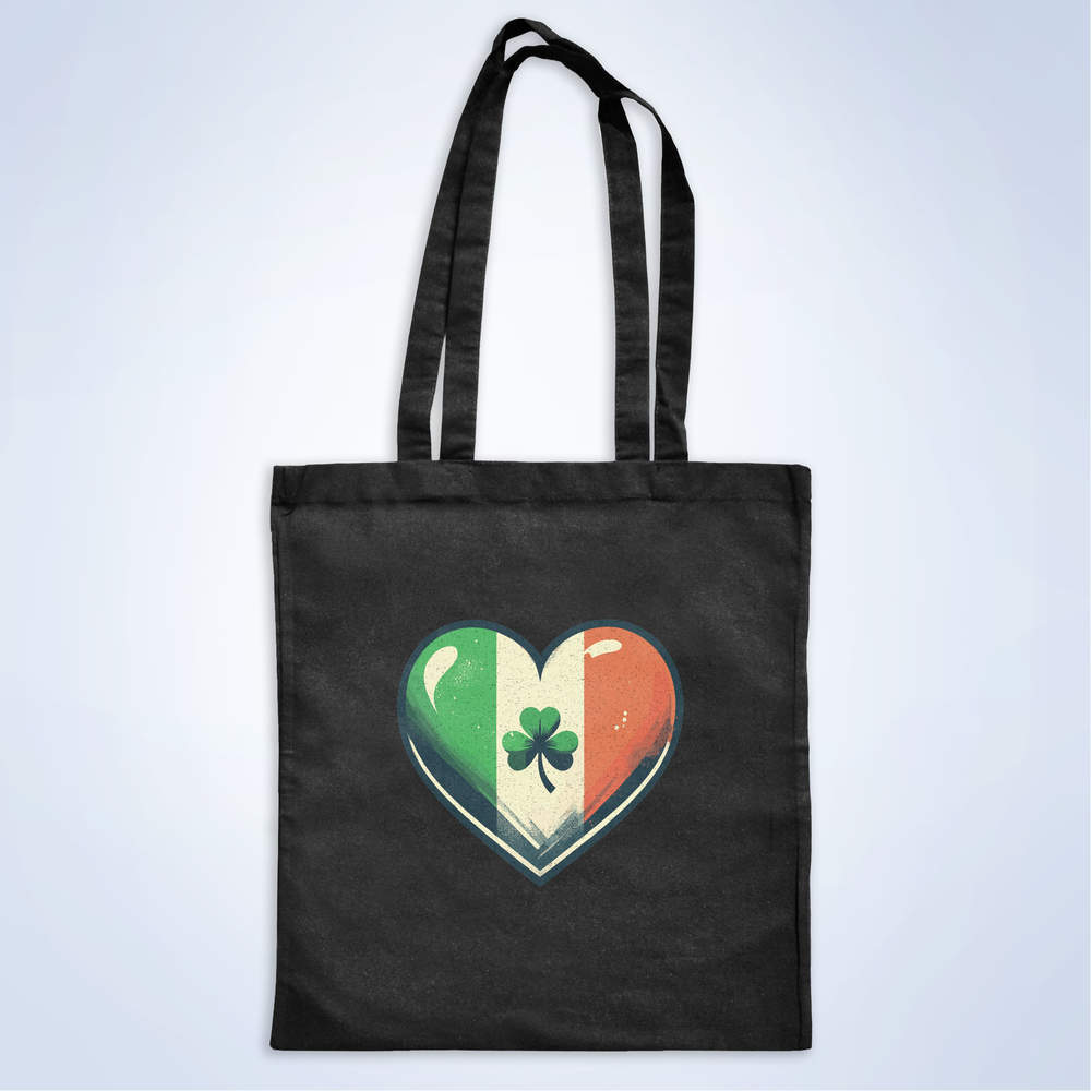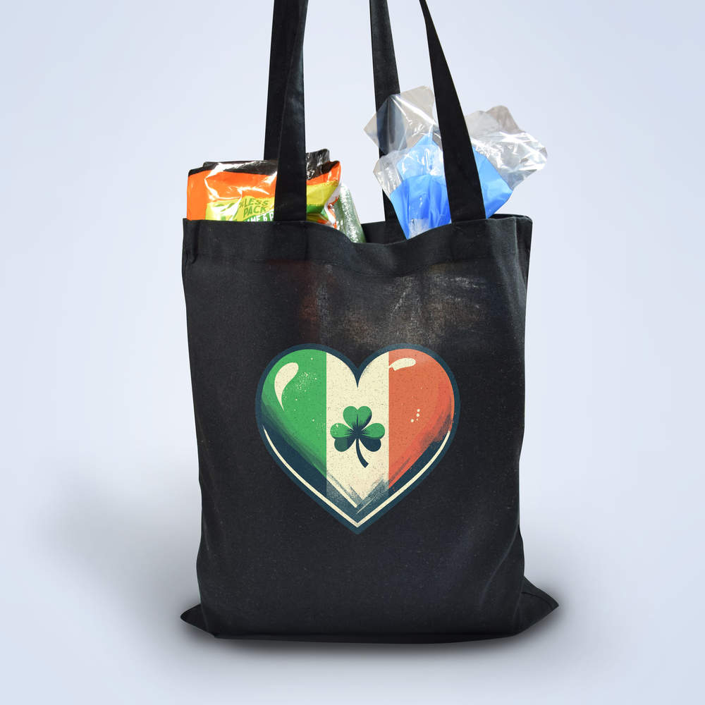 'Ireland Love Heart With Shamrock' Classic Black Tote Shopper Bag (ZB00026500)