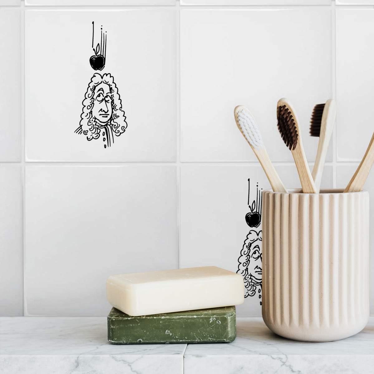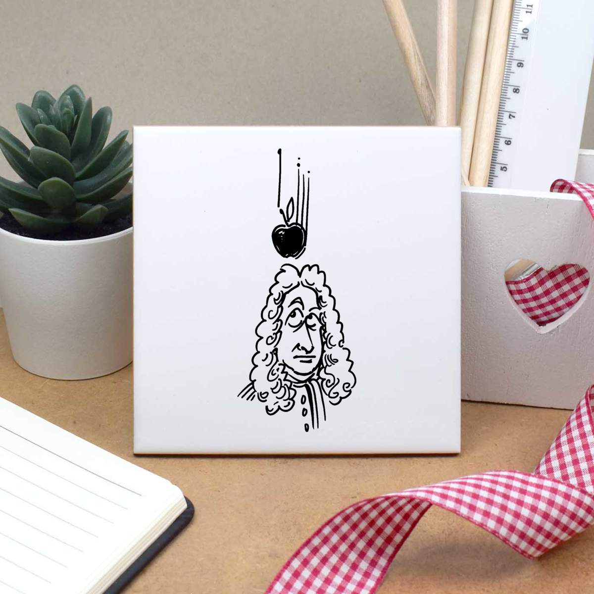 'Isaac Newton & Apple' 108mm Square Ceramic Tile (TD00012702)